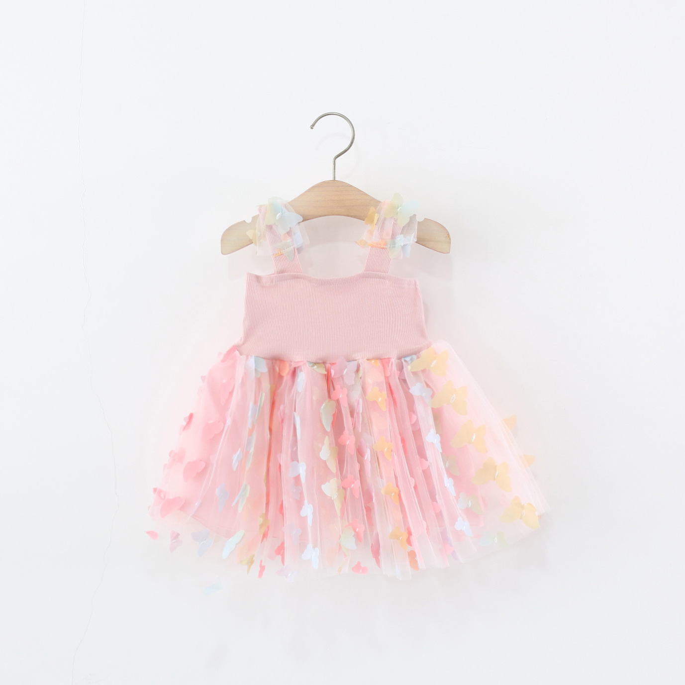 아동복 2025 새 여아 민소매 원피스 여름 어린이 아기 소녀 스테레오 나비 스트랩 공주 원피스스토어 가기
