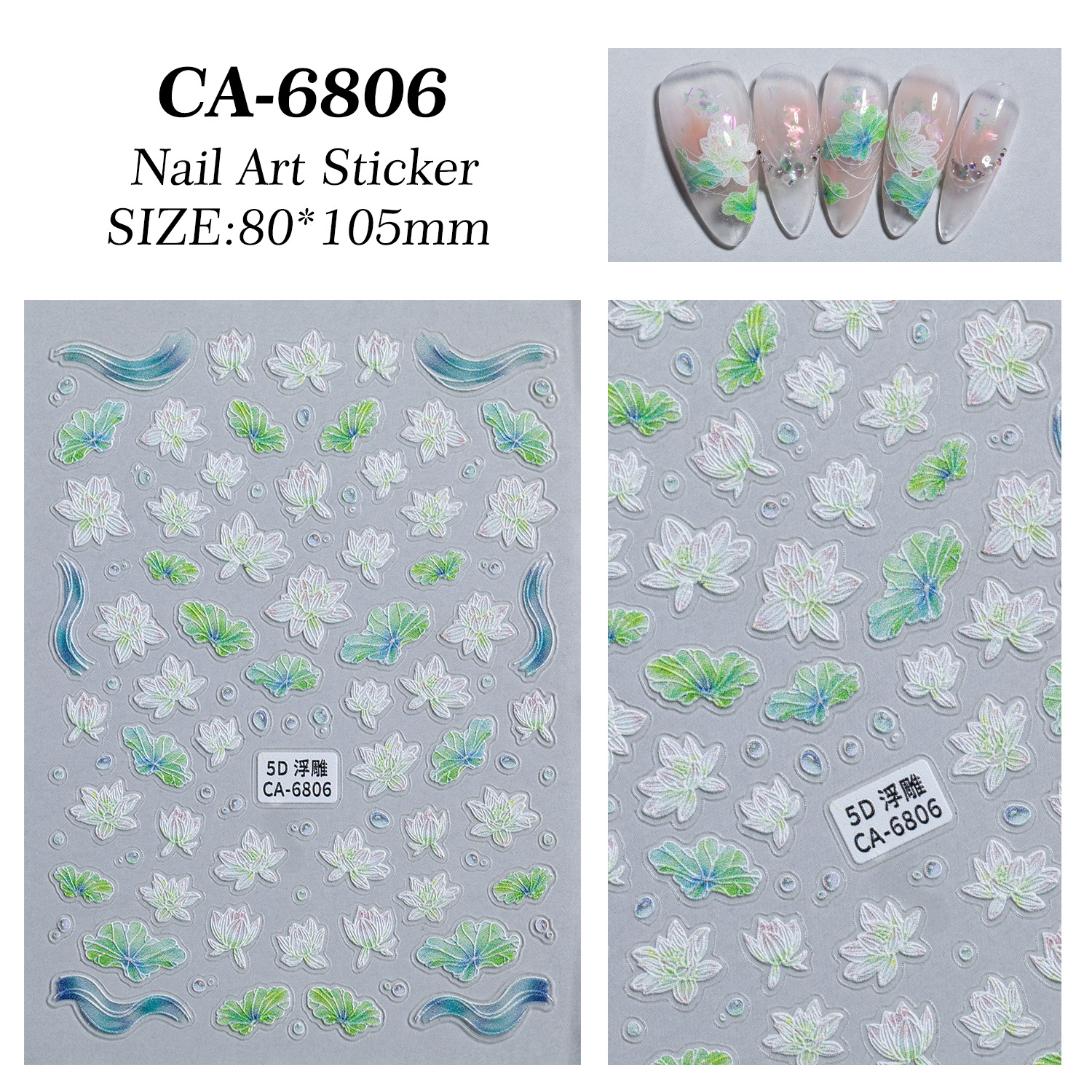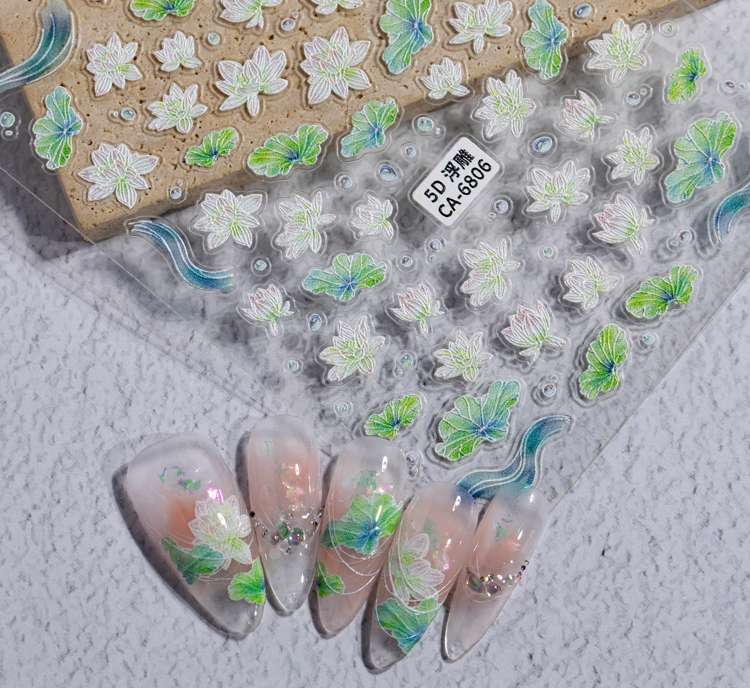 오로라 연꽃 종이 갑옷 스티커 5D 양각 쉘 빛 여름 연꽃 잎 연꽃 네일 아트 스티커 보석 CA스토어 가기