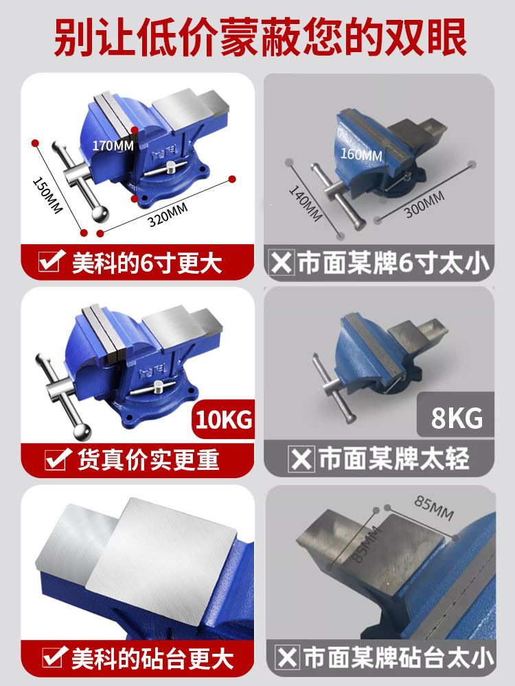 Meike Heavy Duty Vise 산업 등급 Vise 작업대 6 인치 다기능 정밀 플랫 입 고정 장치 4 인치스토어 가기