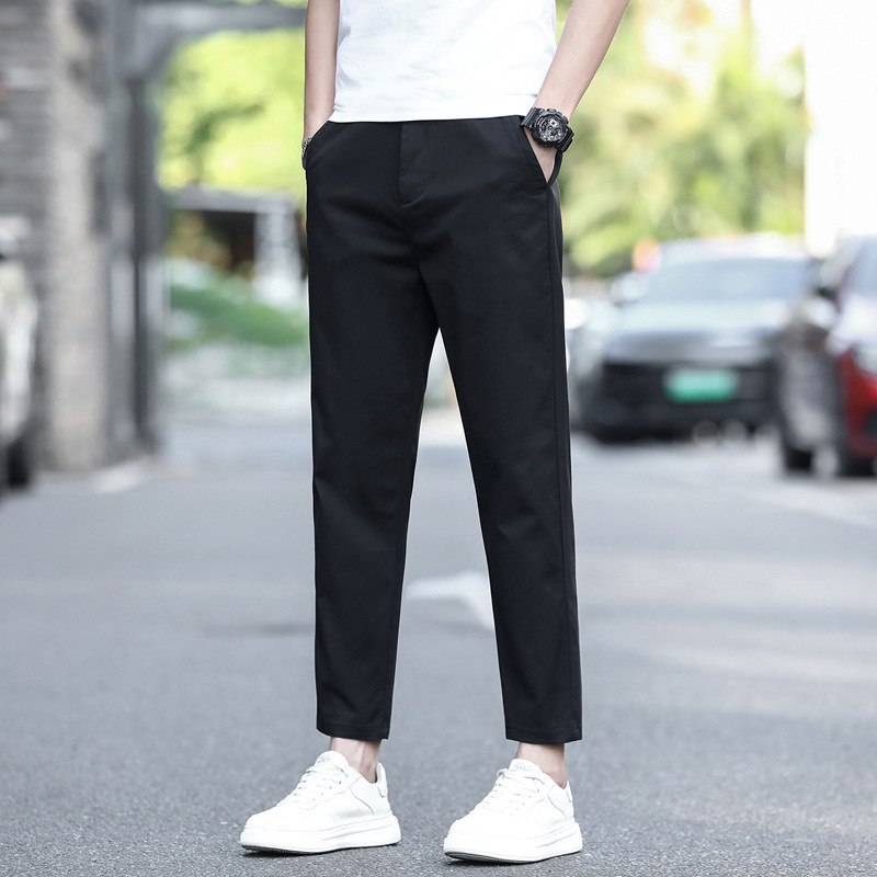 2025 트렌디 시즌 신상 남성 슬림핏 아이스 실크 스트레이트 팬츠 남성 루즈핏 캐주얼 팬츠