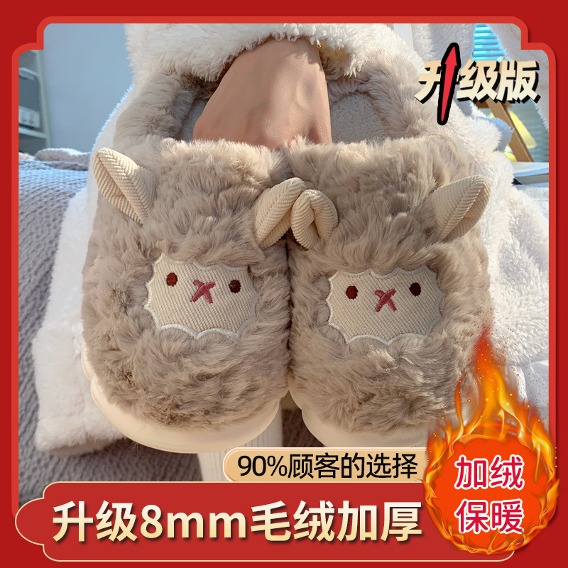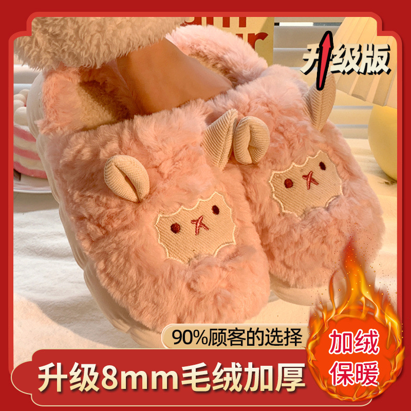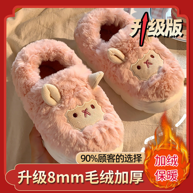 면 슬리퍼 여성 성인 여성의 겨울 새 가정 기모 가방발 뒤꿈치 여성용 신발