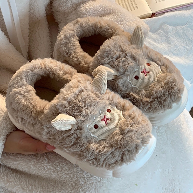 • [따뜻함과 추위로부터 발을 보호해주는 면 슬리퍼] 겨울용 브라운 슬리퍼