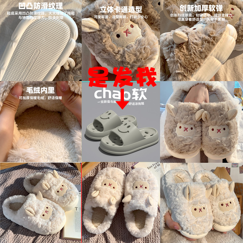 면 슬리퍼 여성 성인 여성의 겨울 새 가정 기모 가방발 뒤꿈치 여성용 신발스토어 가기