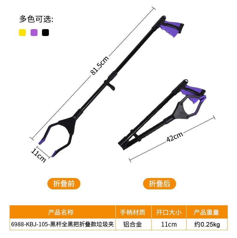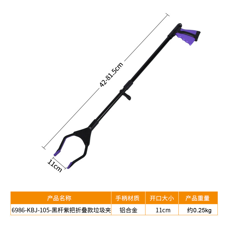 • 6986-KBJ-105-검은색 막대와 보라색 손잡이 접이식 쓰레기 클립