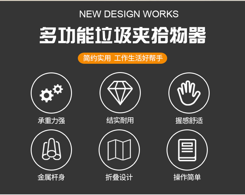 • 6984-KBJ-105-주황색 접이식 쓰레기 클립