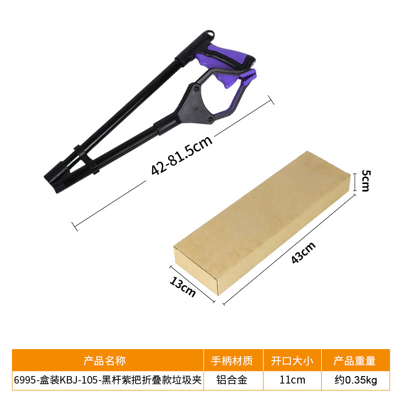 • 6995-박스형 KBJ-105-검은색 막대와 보라색 손잡이 접이식 쓰레기 클립