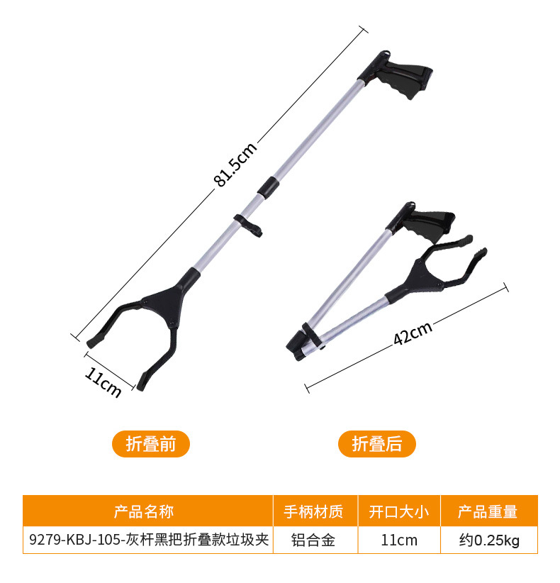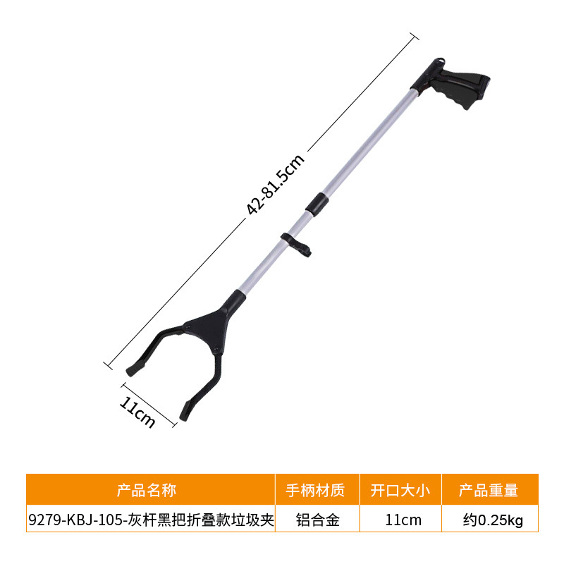 • 9279-KBJ-105-회색 막대와 검정색 손잡이 접이식 쓰레기 클립