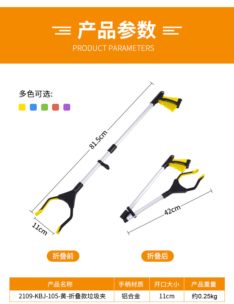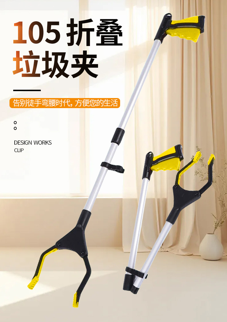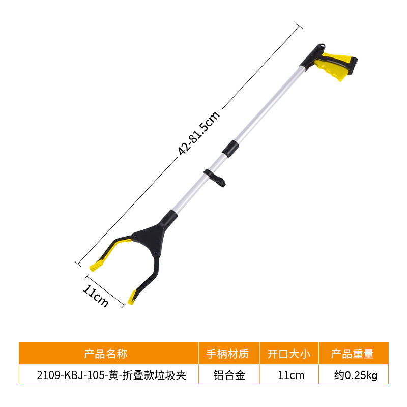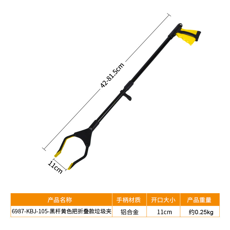• 6987-KBJ-105-검은색 막대와 노란색 손잡이 접이식 쓰레기 클립