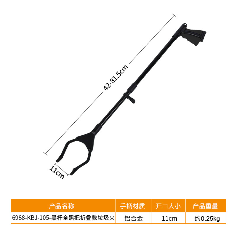 • 6988-KBJ-105-블랙 폴 올 블랙 핸들 접이식 쓰레기 클립