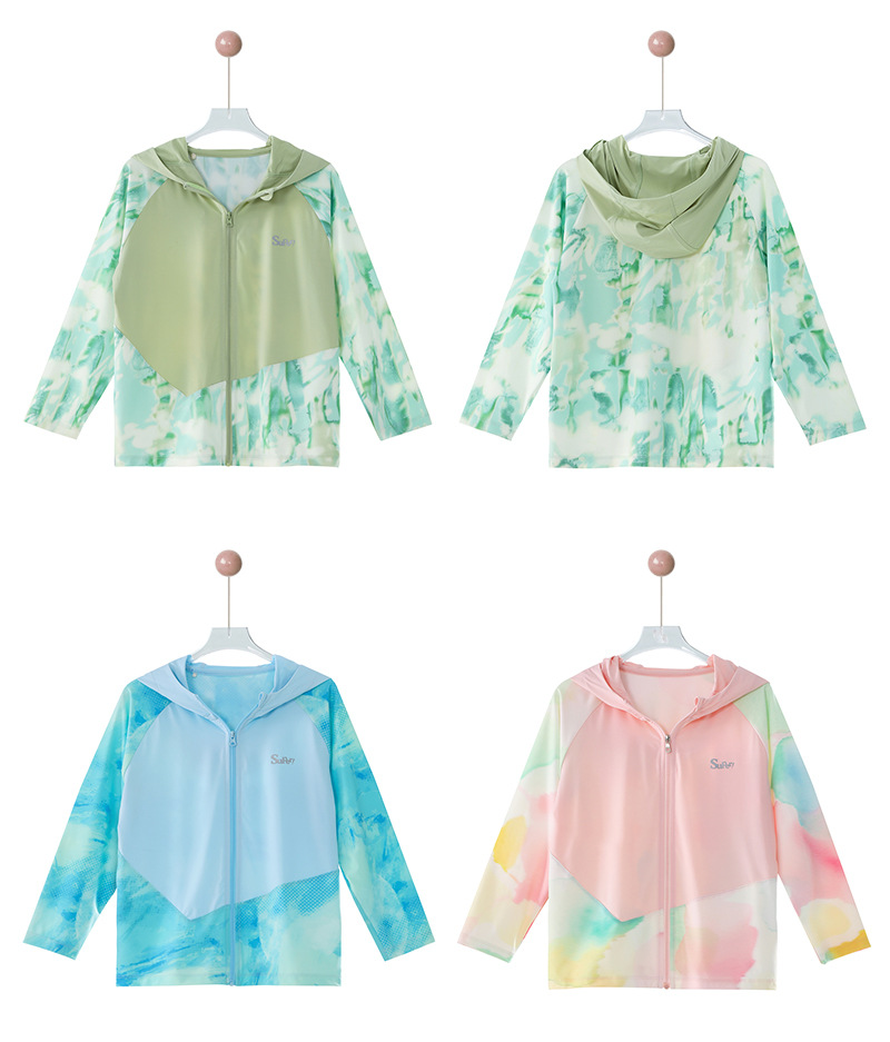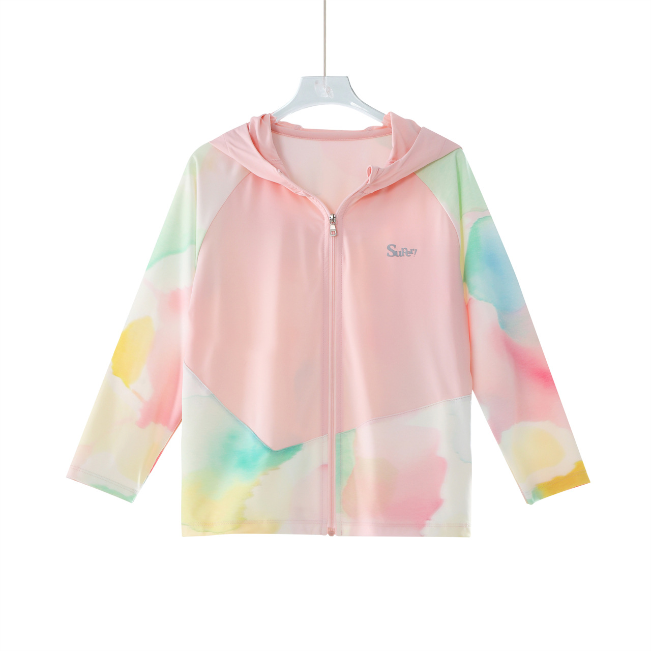 소녀의 선 스크린 의류 여름 다채로운 어린이 얇은 코트 UV 보호 카디건 UPF50 스킨 의류