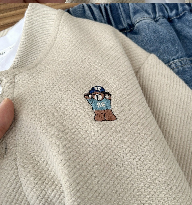 2025 봄 아동복 소년 면 질감 탄성 한국 만화 캐주얼 야구 세트 서양식 코트 트렌디스토어 가기