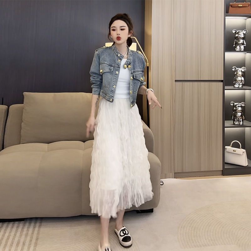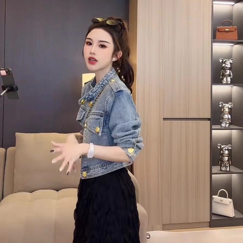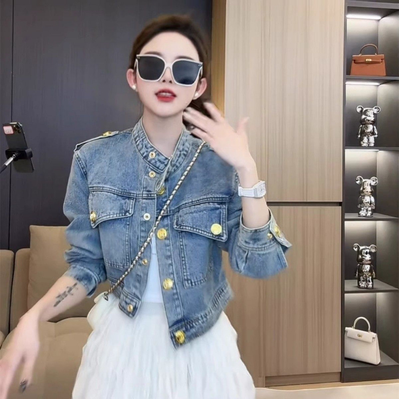 아메리칸 스타일 빈티지 독특한 골드 버튼 짧은 다목적 패션 데님 재킷