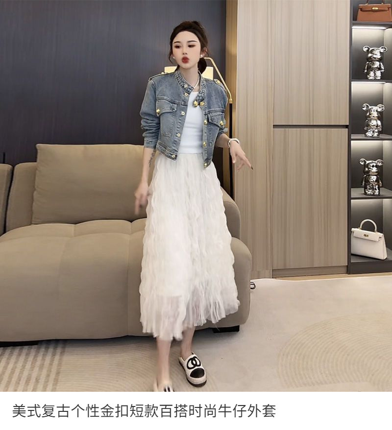 아메리칸 스타일 빈티지 독특한 골드 버튼 짧은 다목적 패션 데님 재킷스토어 가기