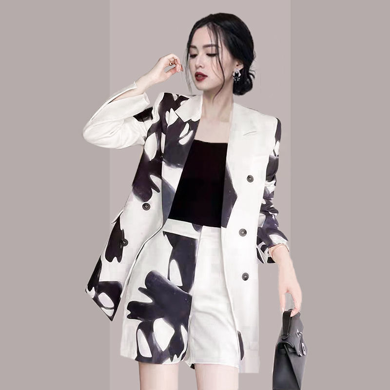 2025 새로운 세트 세트 여성의 작은 세트 레트로 아트 인쇄 느슨한 작은 상단 반바지 투피스 세트