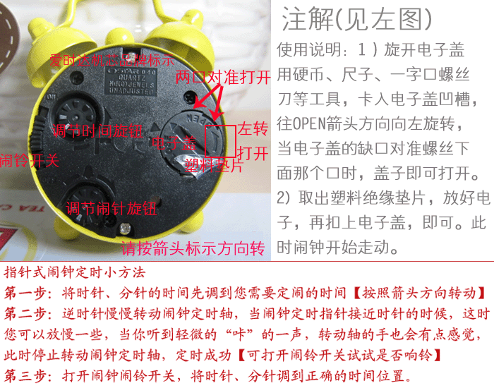 )(每个闹钟里面本身就已经装好了1颗电子哦)需要的客户可以一起拍下