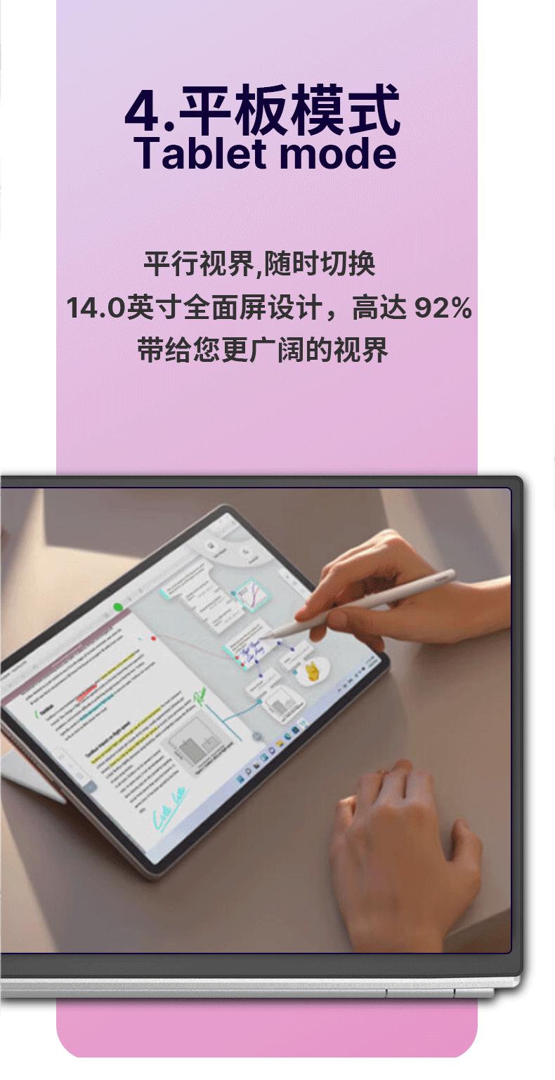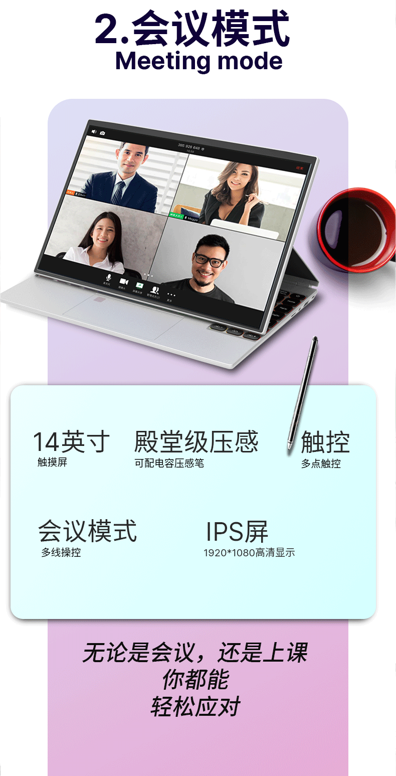 4-in-1 터치스크린 노트북 14inch PC 태블릿 2-in-1 국경 간 비즈니스 오피스 얇고 가벼운 노트북스토어 가기