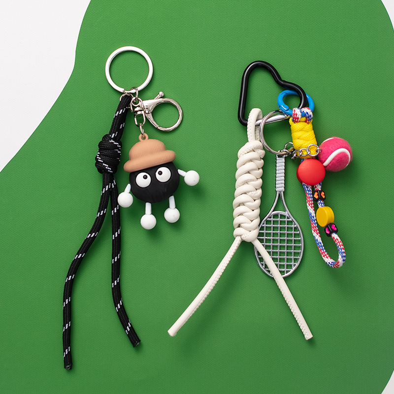 • 테니스 라켓 + 열쇠 - 갈색 로프 스타일