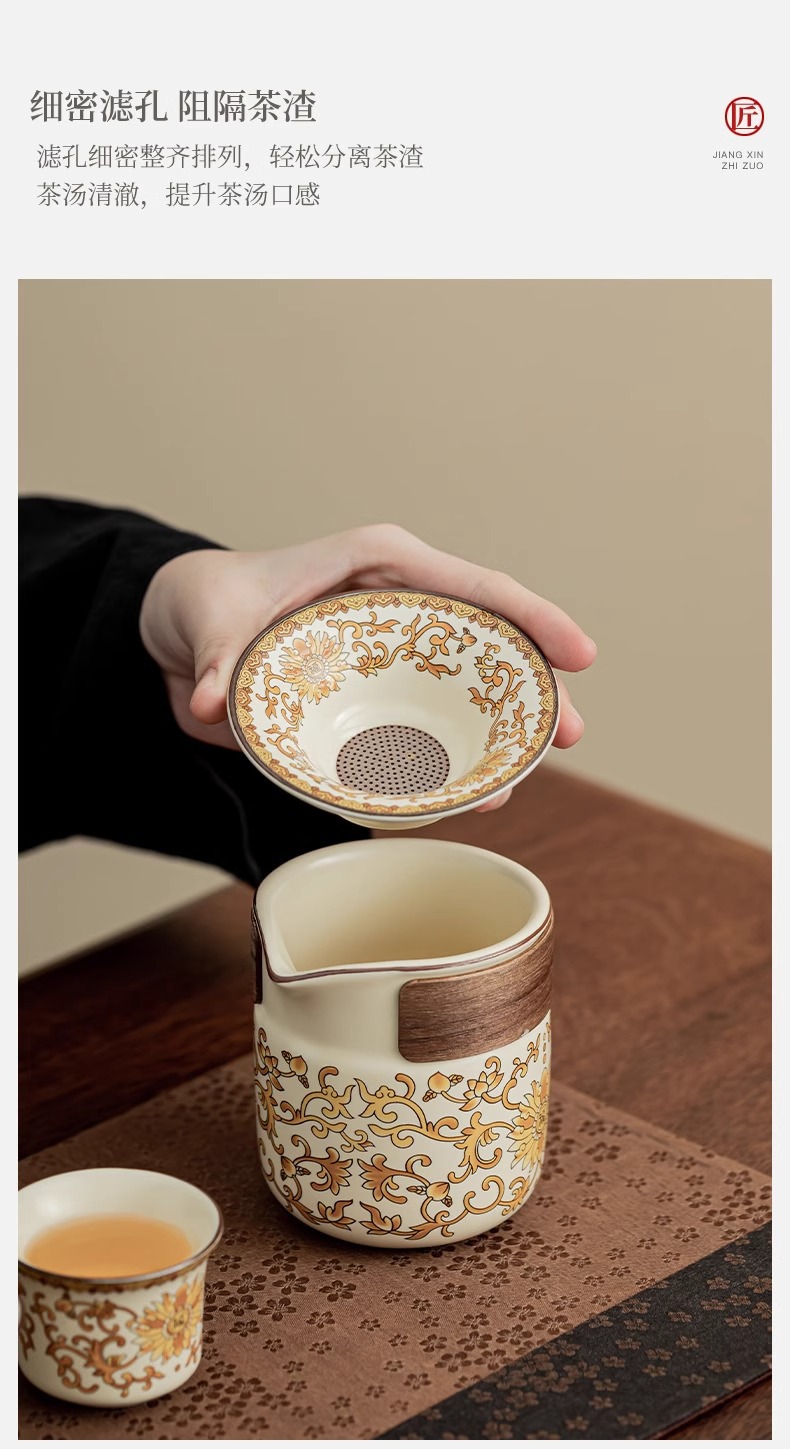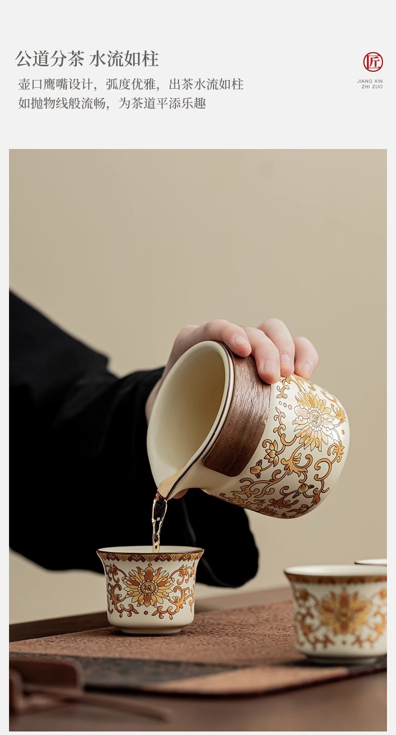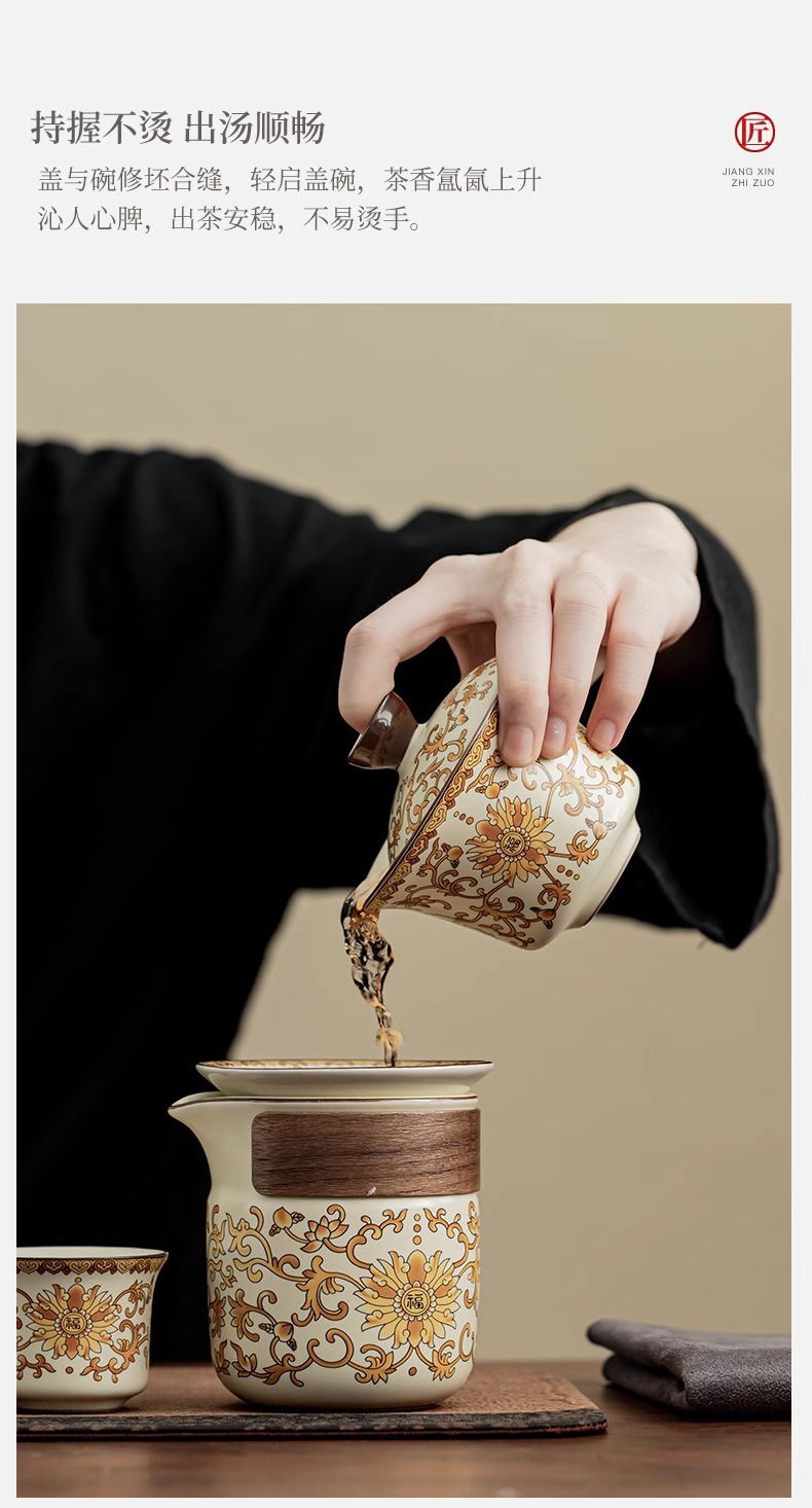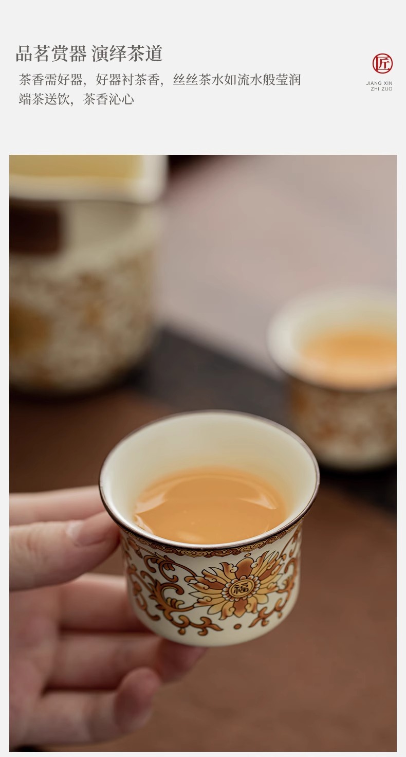 Ruyao 황금 꽃 축복받은 차 세트 선물 상자 세트 홈 거실 사무실 회의 쿵푸 차 세트 세트 세라믹 차 세트스토어 가기