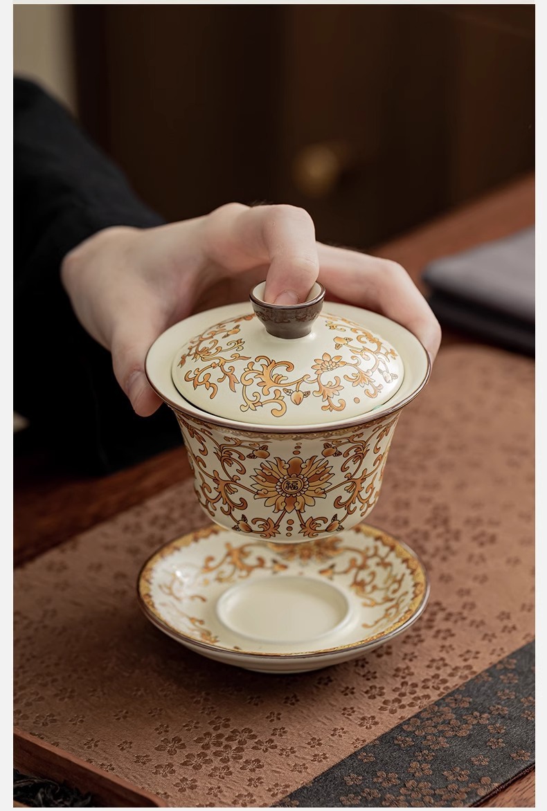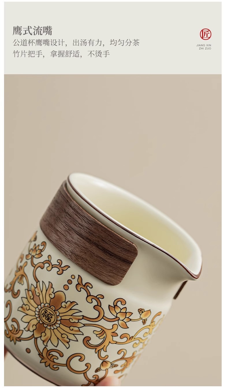 Ruyao 황금 꽃 축복받은 차 세트 선물 상자 세트 홈 거실 사무실 회의 쿵푸 차 세트 세트 세라믹 차 세트