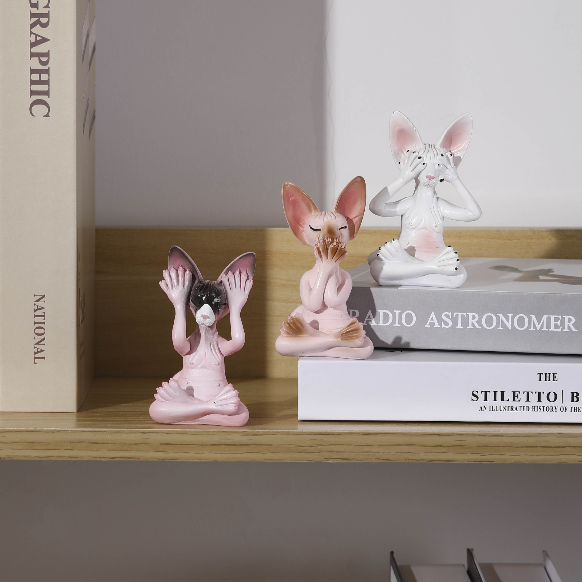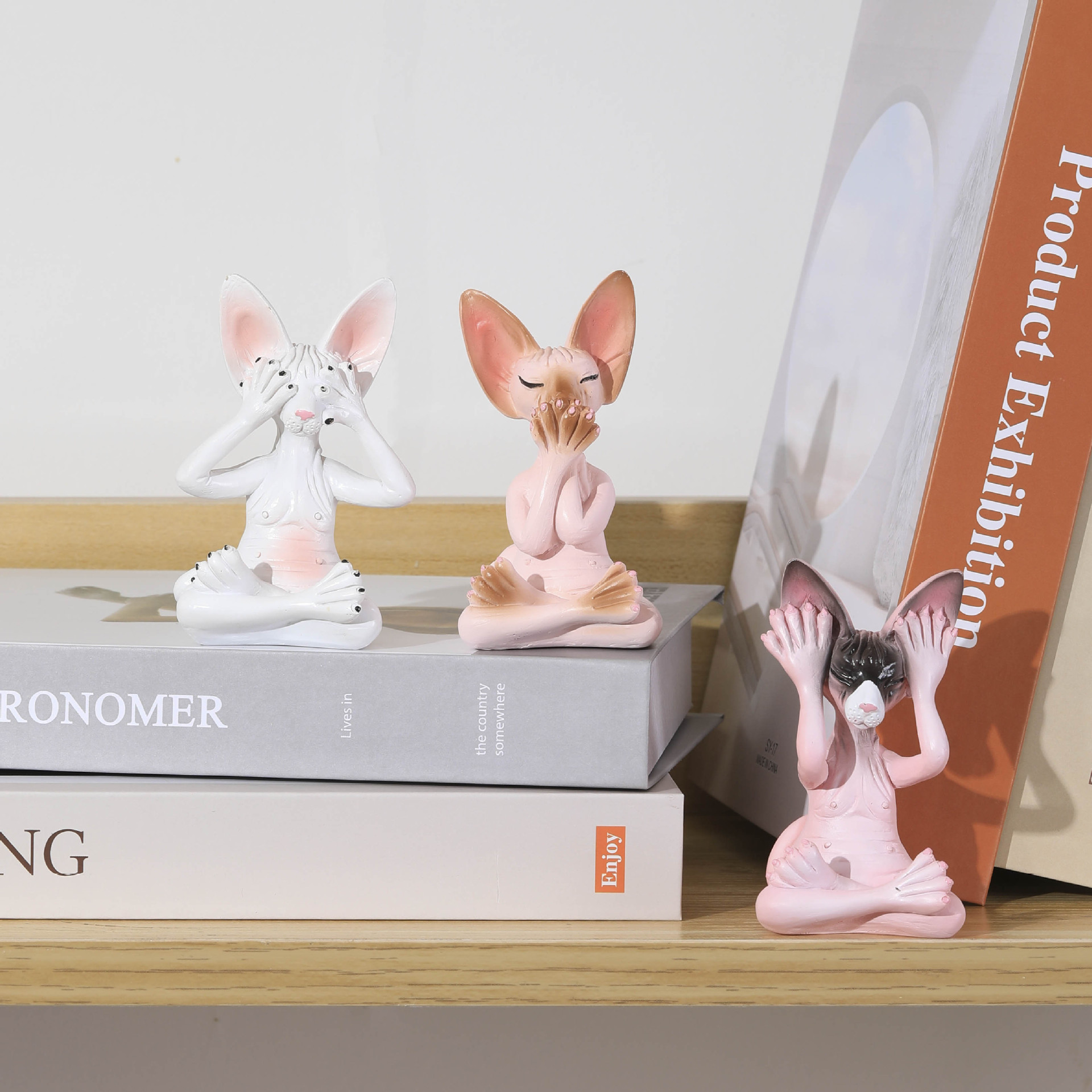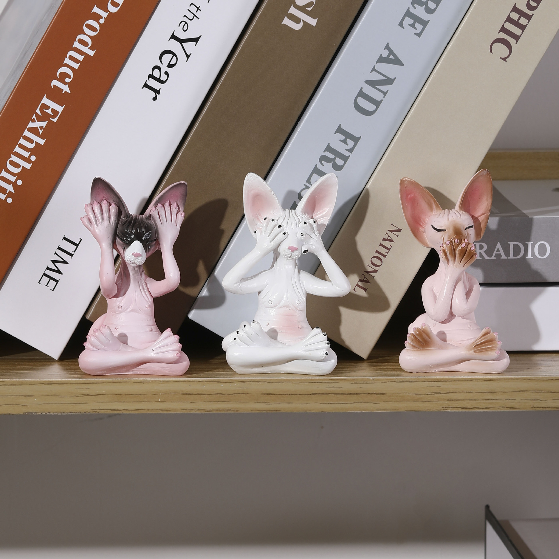 국경 간 수제 새 장식 장식품은 새끼 고양이 가정 장식 수지 공예품을 보거나 듣거나 명상하지 않습니다.스토어 가기