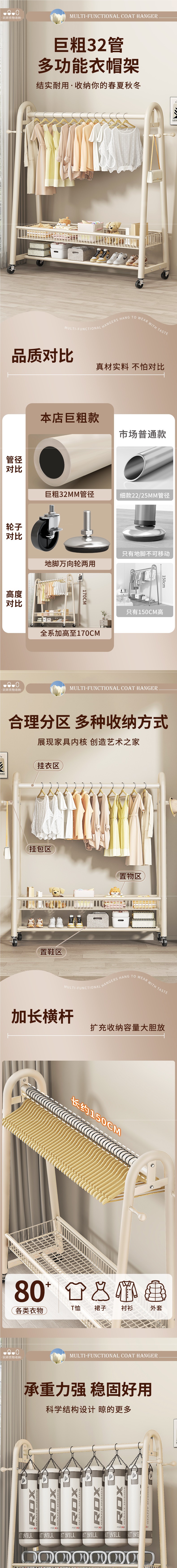 코트 랙 바닥 침실 가정용 객실 옷걸이 보관 의류 랙 간단한 모바일 스토리지 의류 교수형 선반