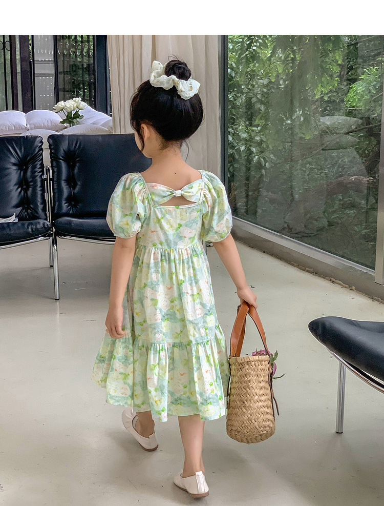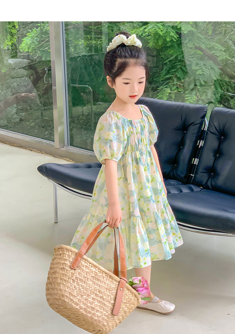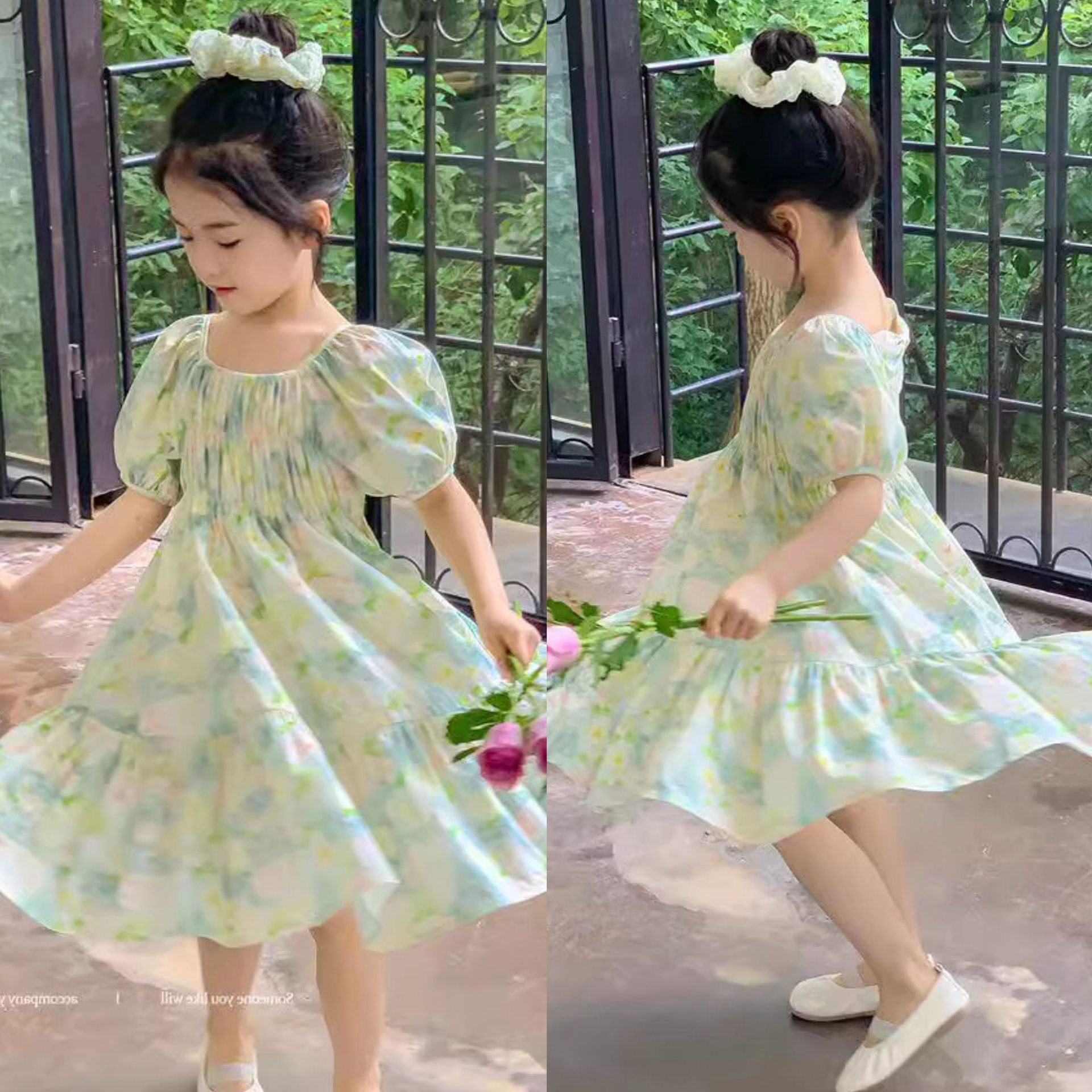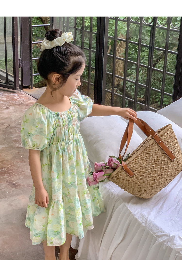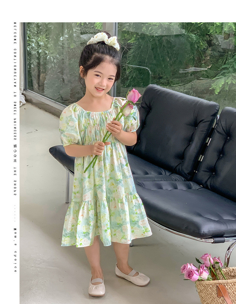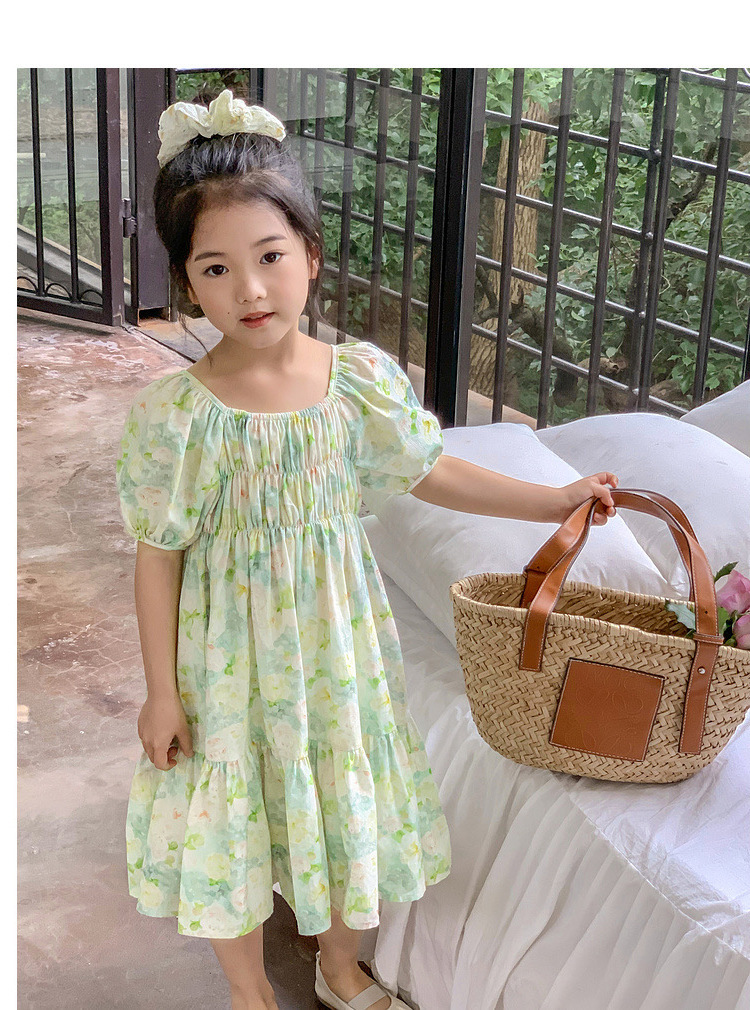 소녀 원피스 여름 새로운 목가적 인 스타일의 꽃 거품 소매 공주 치마 어린이 머리카락 세대스토어 가기