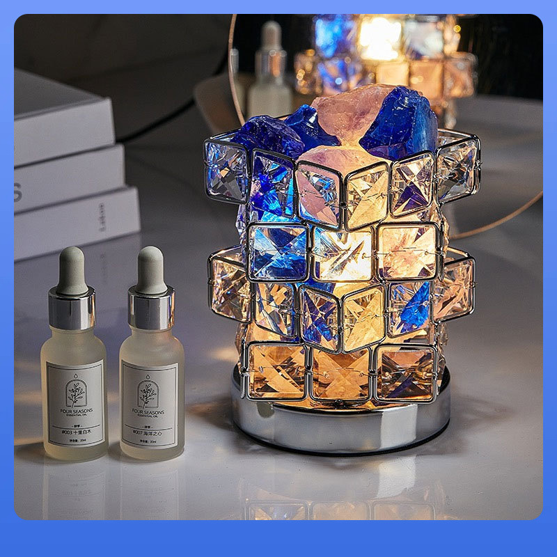 ✅루빅스 큐브 크리스탈 소금 램프 히말라야 밤 빛 침실 수면 침대 램프 분위기 램프 장식 아로마 테라피 테이블 램프