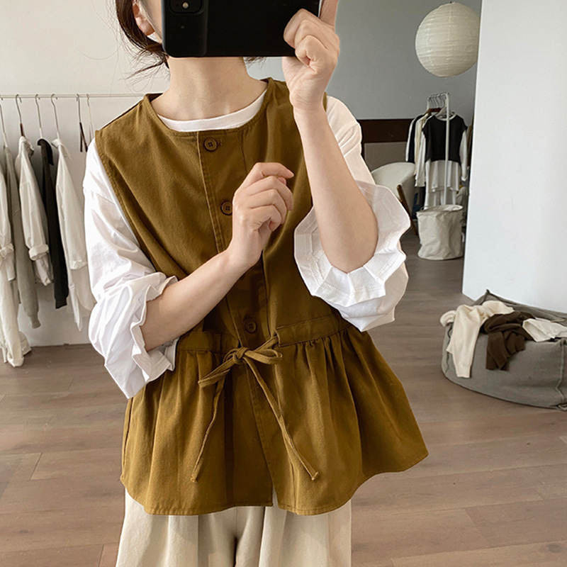 루즈 조끼 여성 2025 년 봄 뉴 에이지 감소 크루 넥 조끼 탑 러플 니쉬 디자인 센스 재킷스토어 가기