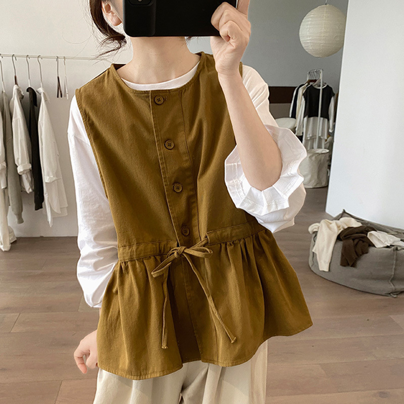 루즈 조끼 여성 2025 년 봄 뉴 에이지 감소 크루 넥 조끼 탑 러플 니쉬 디자인 센스 재킷