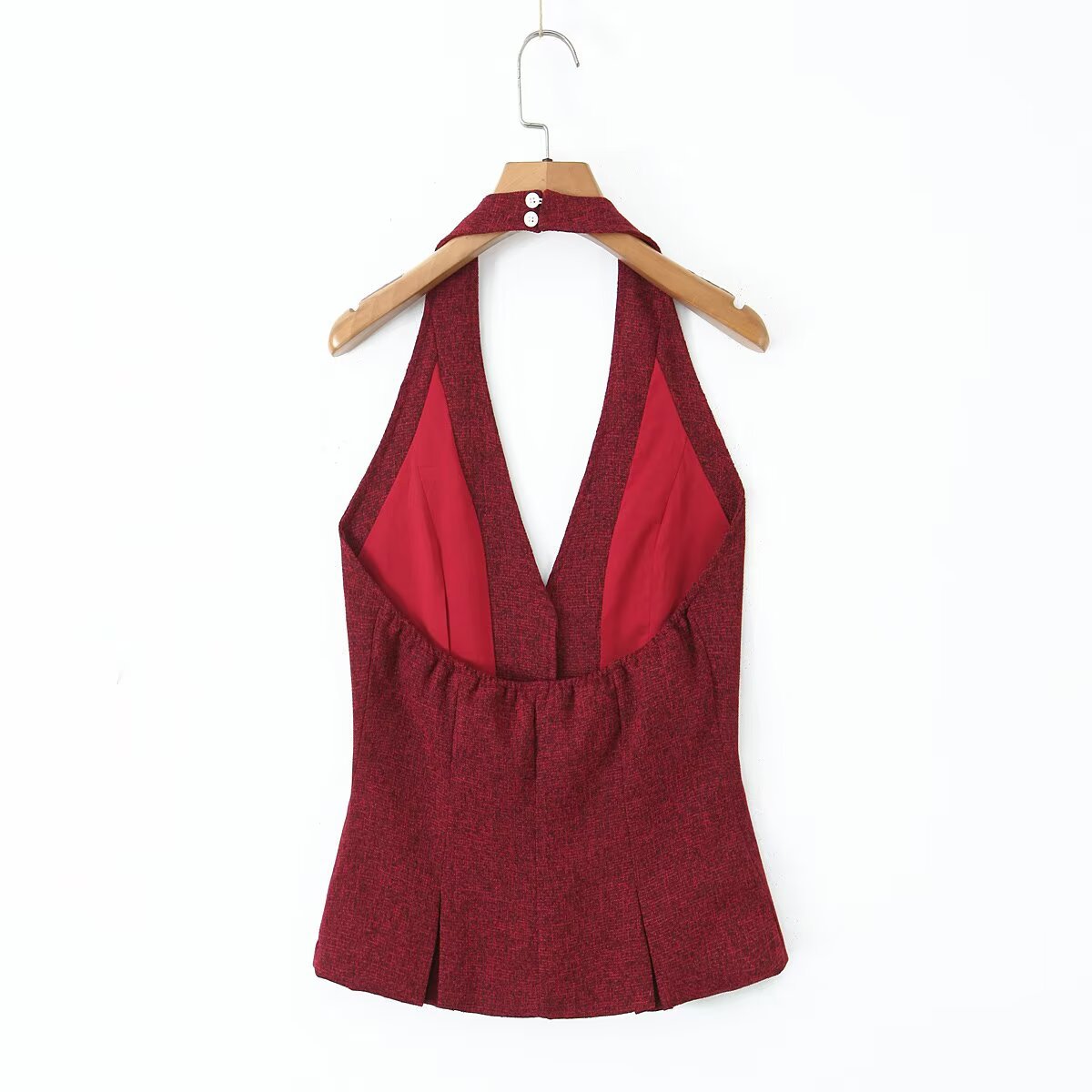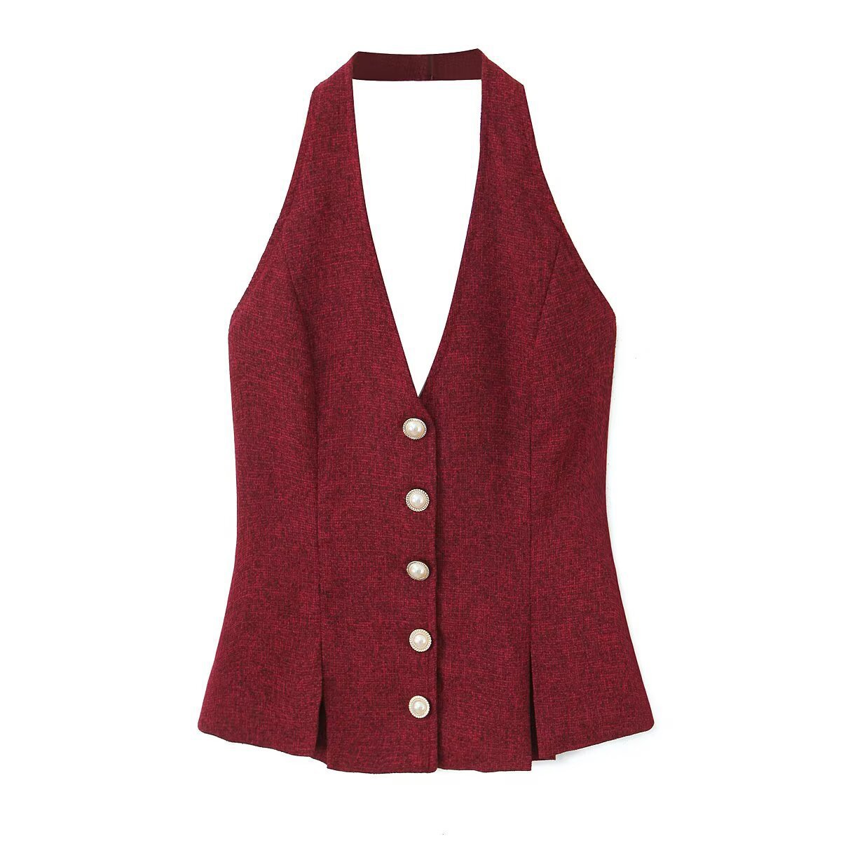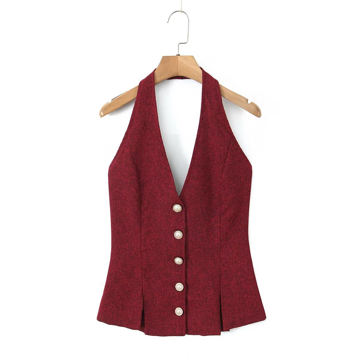 대외 무역 여성 도매 유럽과 미국 스타일의 진주 장식품 단일 가슴 두꺼운 모조 매달려 목 민소매 V 넥 조끼