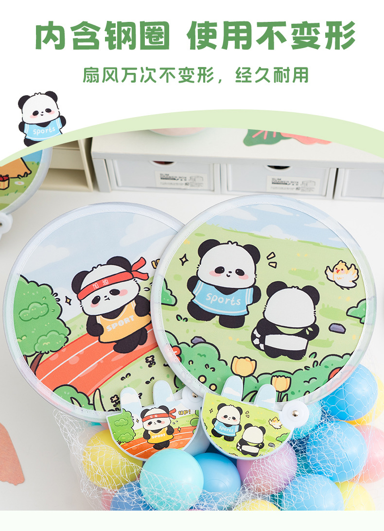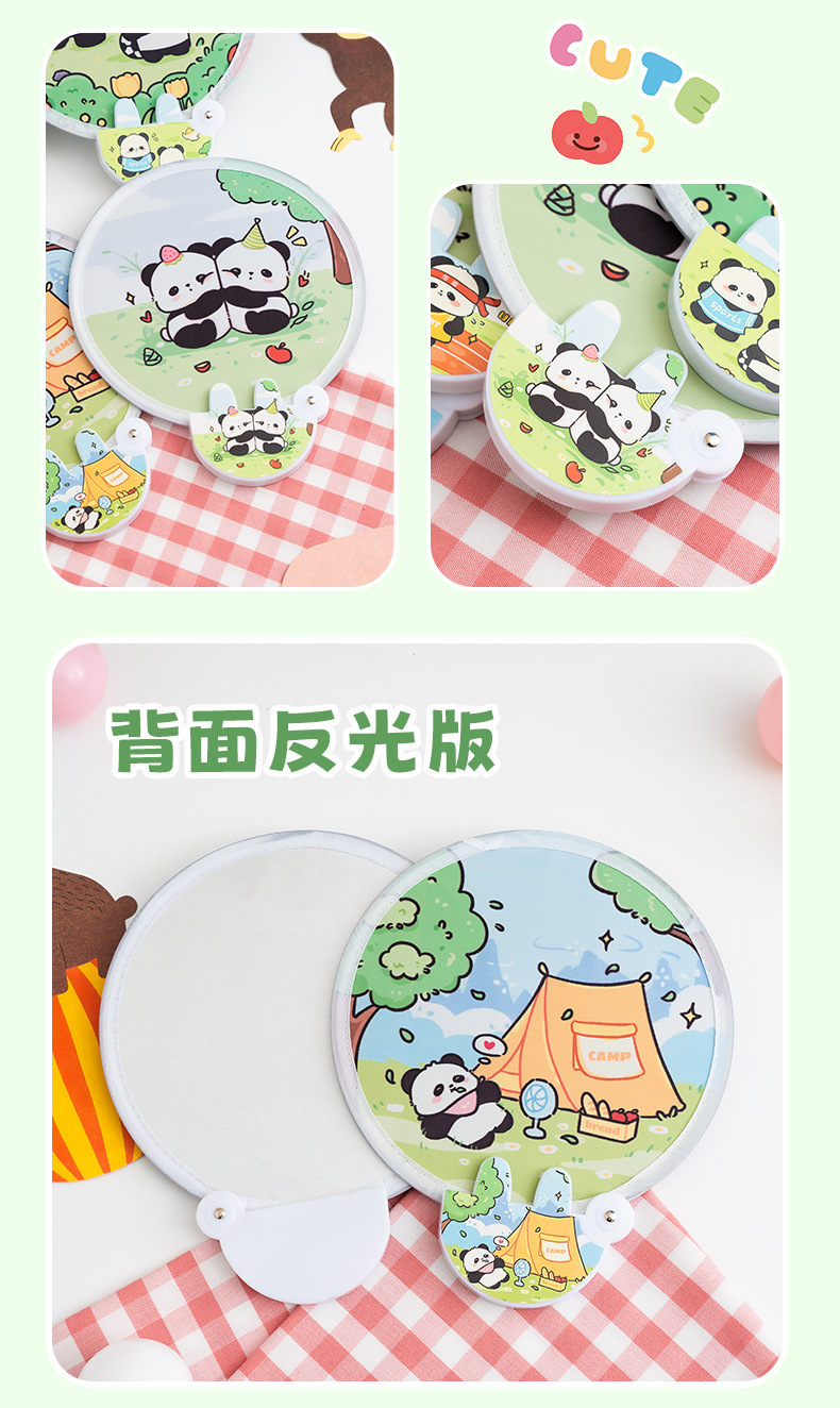 만화 팬더 라운드 팬 반사 여름 귀여운 작은 팬 휴대용 미니 접이식 팬 높은 색상 가치 포켓 팬