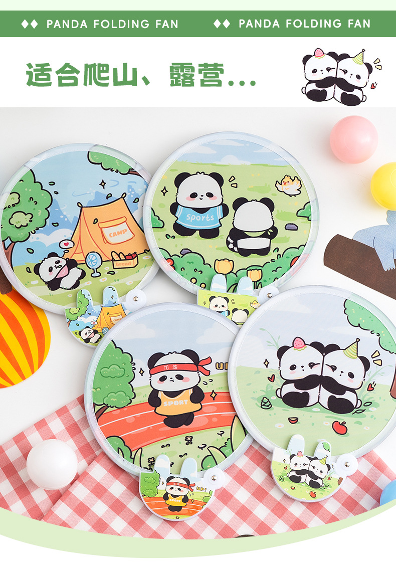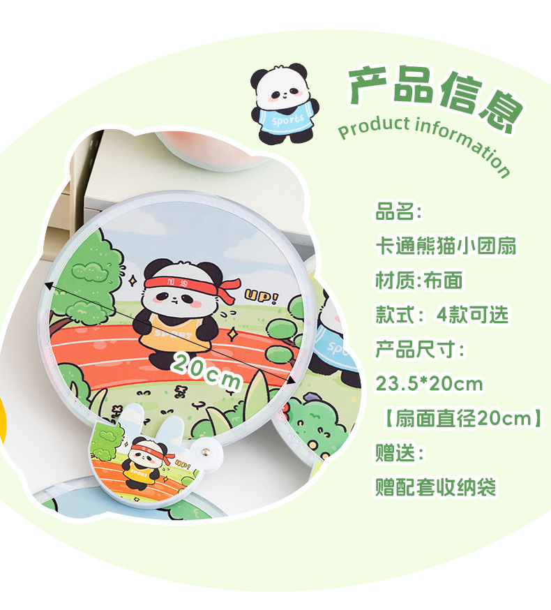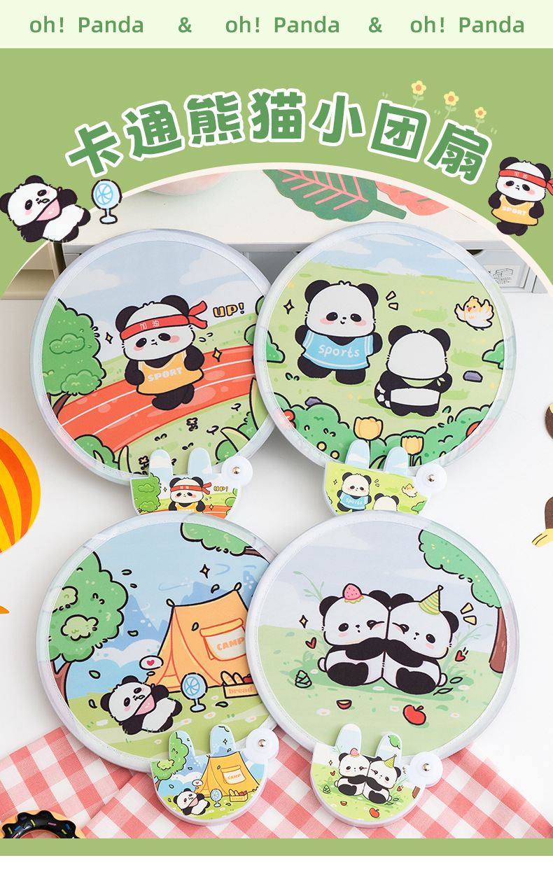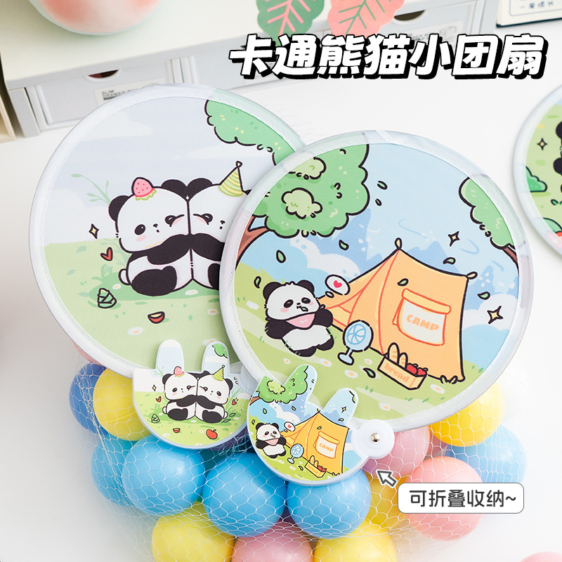 만화 팬더 라운드 팬 반사 여름 귀여운 작은 팬 휴대용 미니 접이식 팬 높은 색상 가치 포켓 팬스토어 가기
