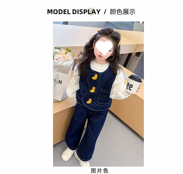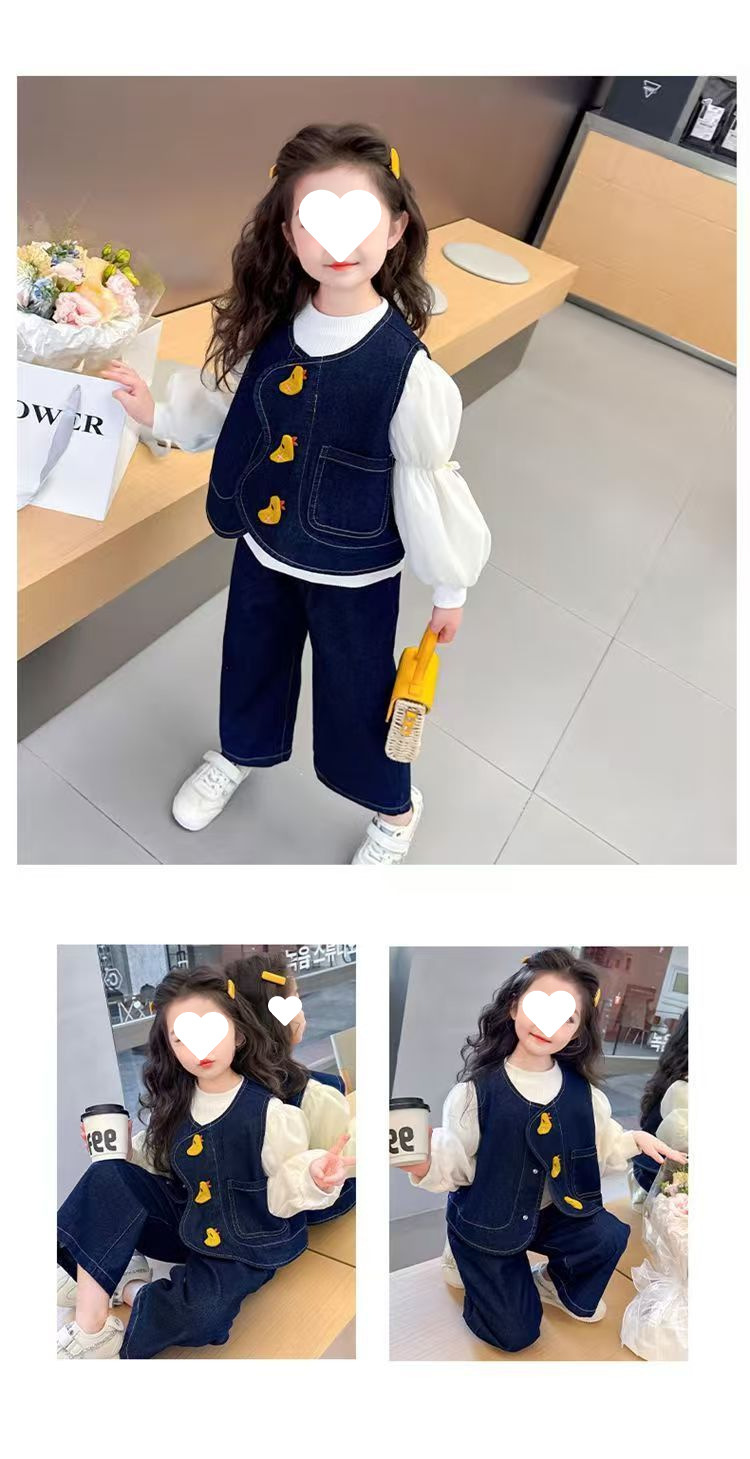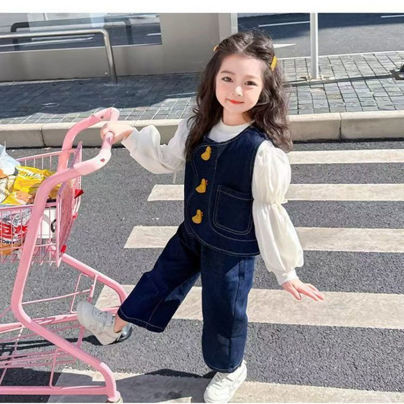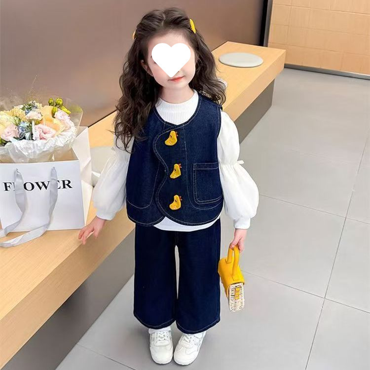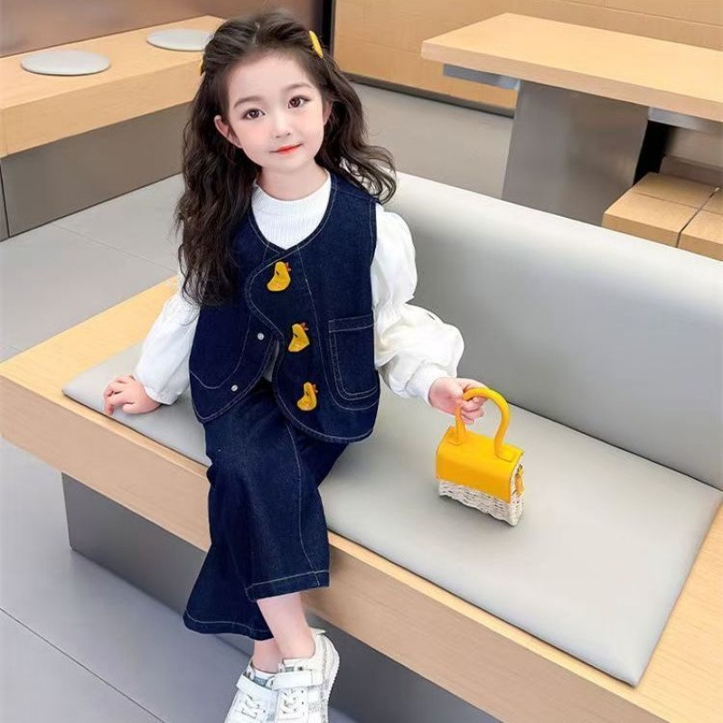 소녀의 봄 가을 세트 2025 새로운 유행 서양식 데님 소녀 조끼 한국 스타일스토어 가기