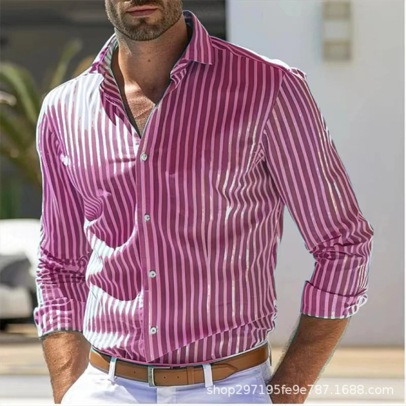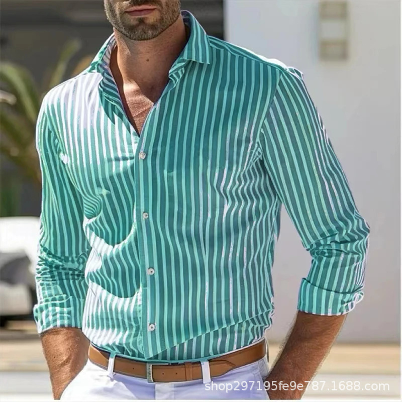 2025 대외 무역 새로운 남성 슬림 핏 스트라이프 긴팔 셔츠 청소년 패션 비즈니스 캐주얼 셔츠 남성스토어 가기