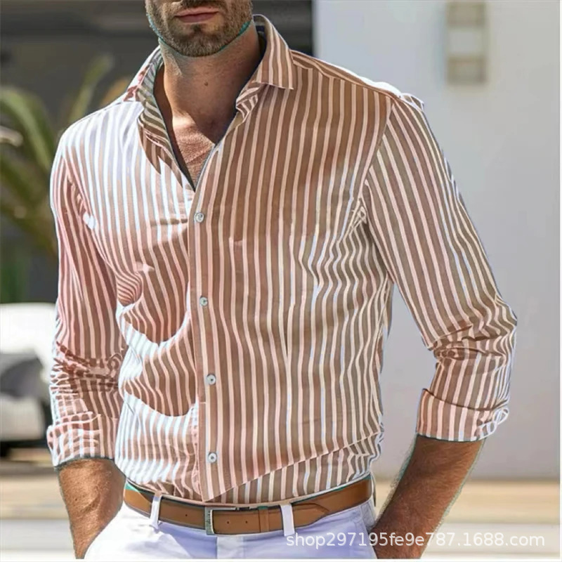 2025 대외 무역 새로운 남성 슬림 핏 스트라이프 긴팔 셔츠 청소년 패션 비즈니스 캐주얼 셔츠 남성