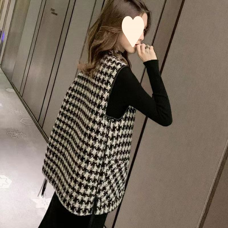 샤넬 스타일 Houndstooth Vest 재킷 여성 2025 년 봄과 가을 새로운 올 매치 느슨한 캐주얼 패션 조끼스토어 가기