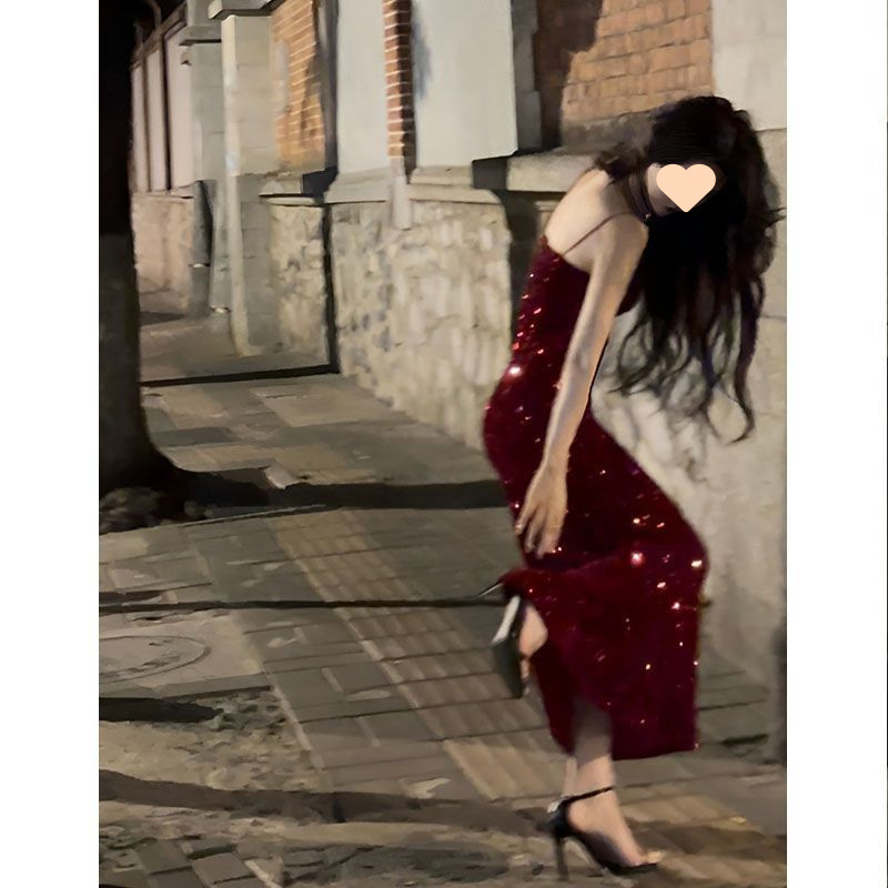 섹시한 붉은 사교계 벨벳 조각 슬링 원피스 원피스 높은 허리 슬리밍 피쉬 테일 원피스 여성을위한 우아한 원피스스토어 가기