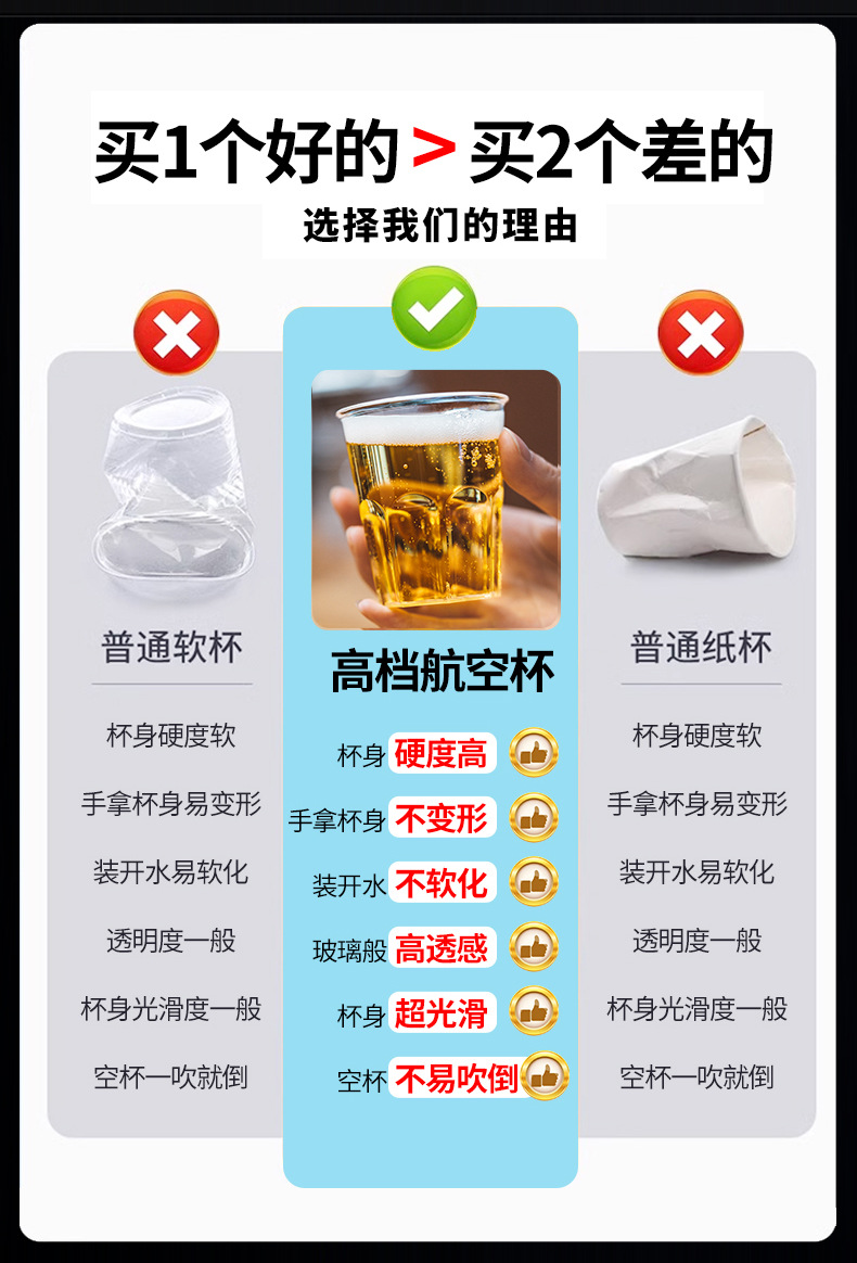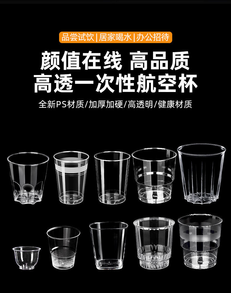 항공 컵 일회용 하드 컵 워터 컵 티 컵 식품 학년 투명 플라스틱 컵 두꺼운 가정용 크리스탈 스페이스 컵