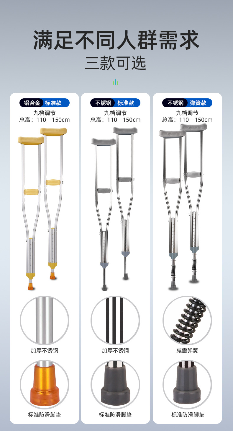 노인을위한 겨드랑이 목발 목발 목발 및 젊은 보조 골절 재활 워커 장애인 목발 미끄럼 경량