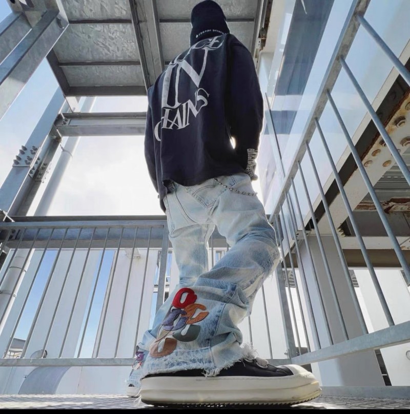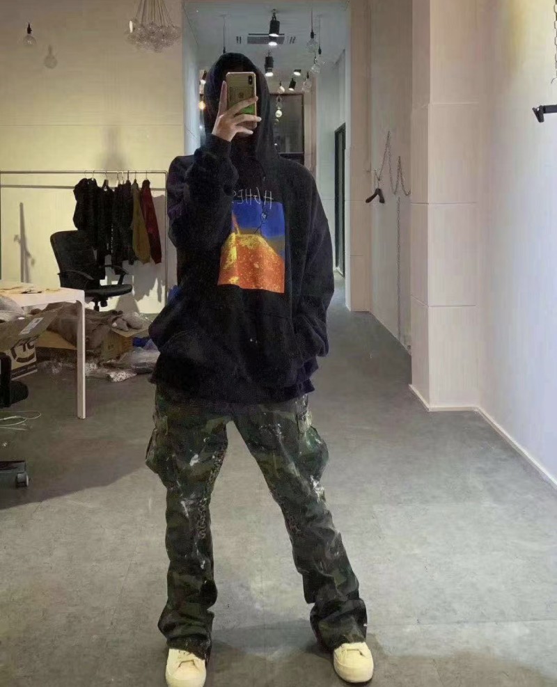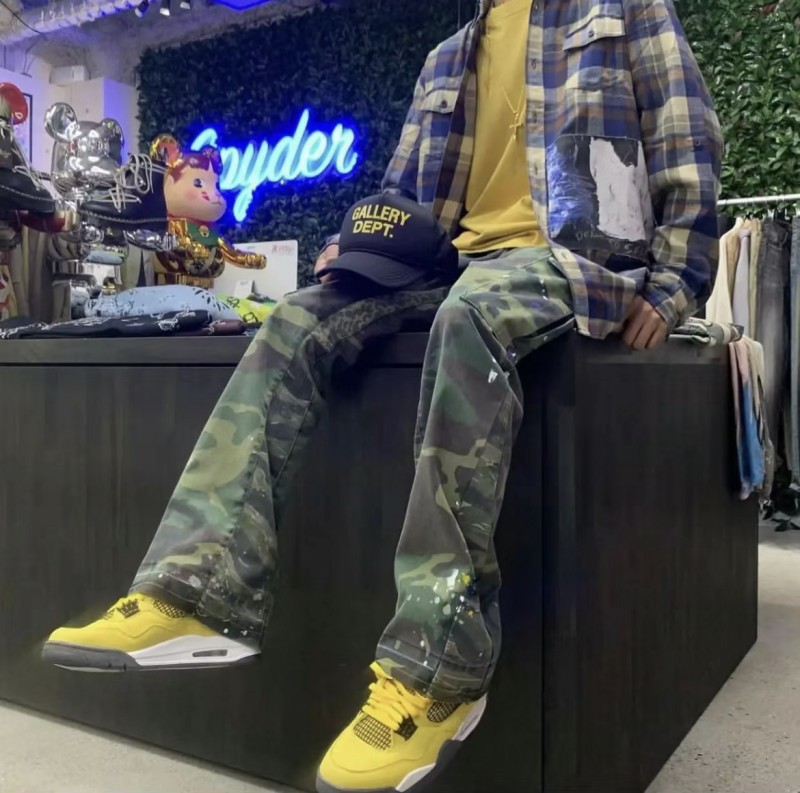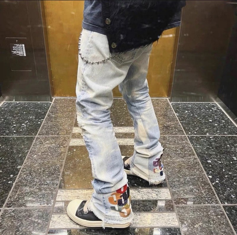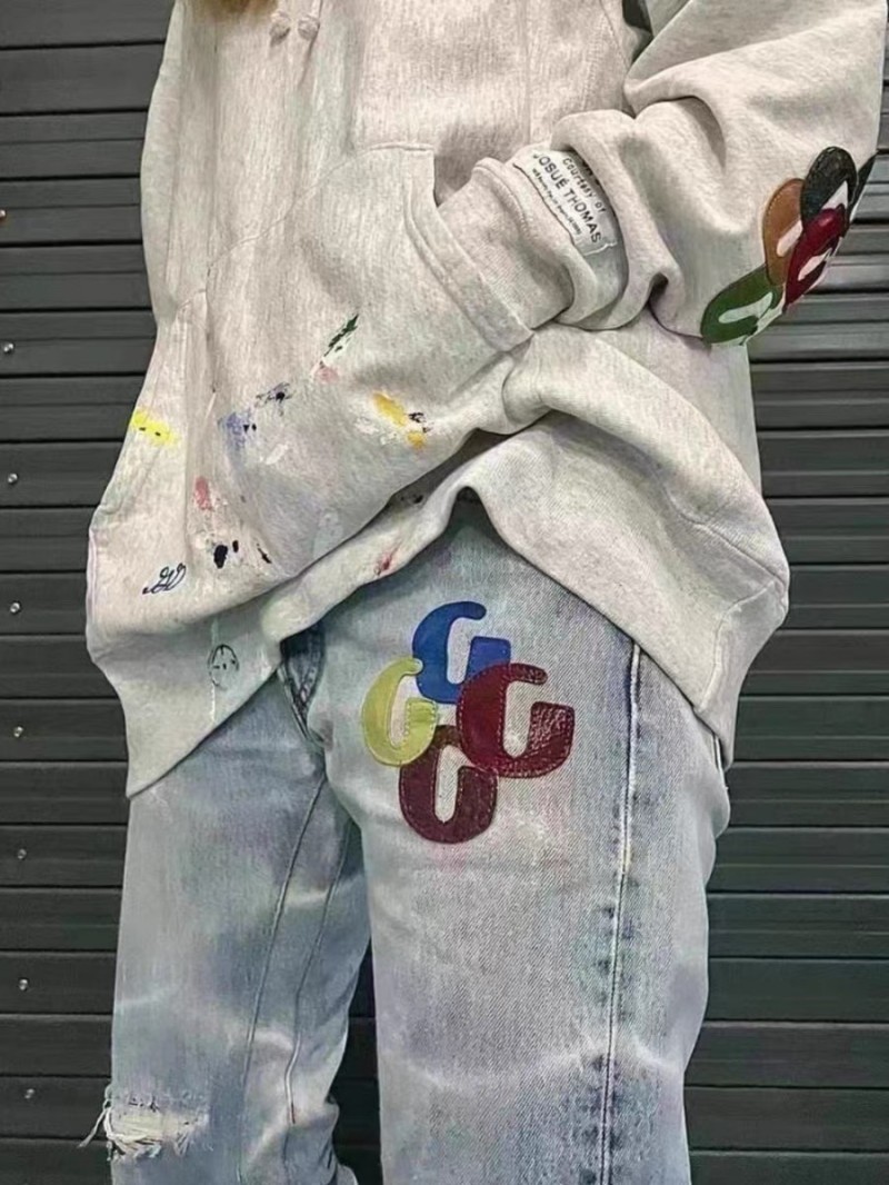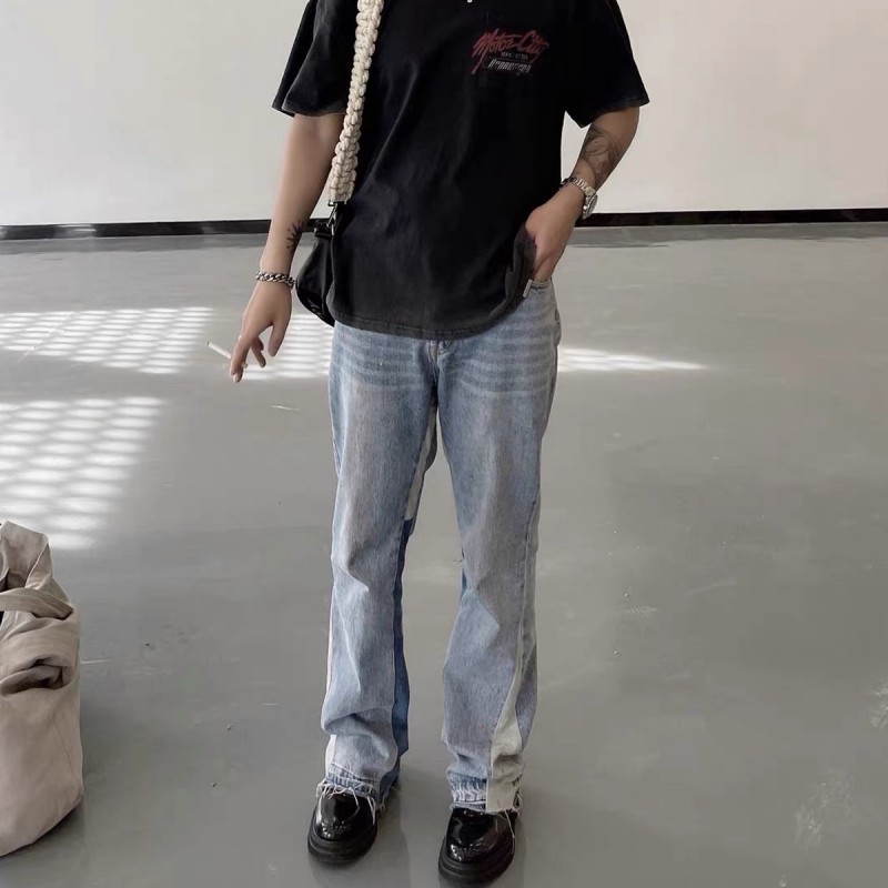 대외 무역 도매 조수 브랜드 갤러리 dept 복고풍 오래된 스플래시 잉크 청바지 하이 스트리트 스트레이트 와이드 다리 바지 남성스토어 가기