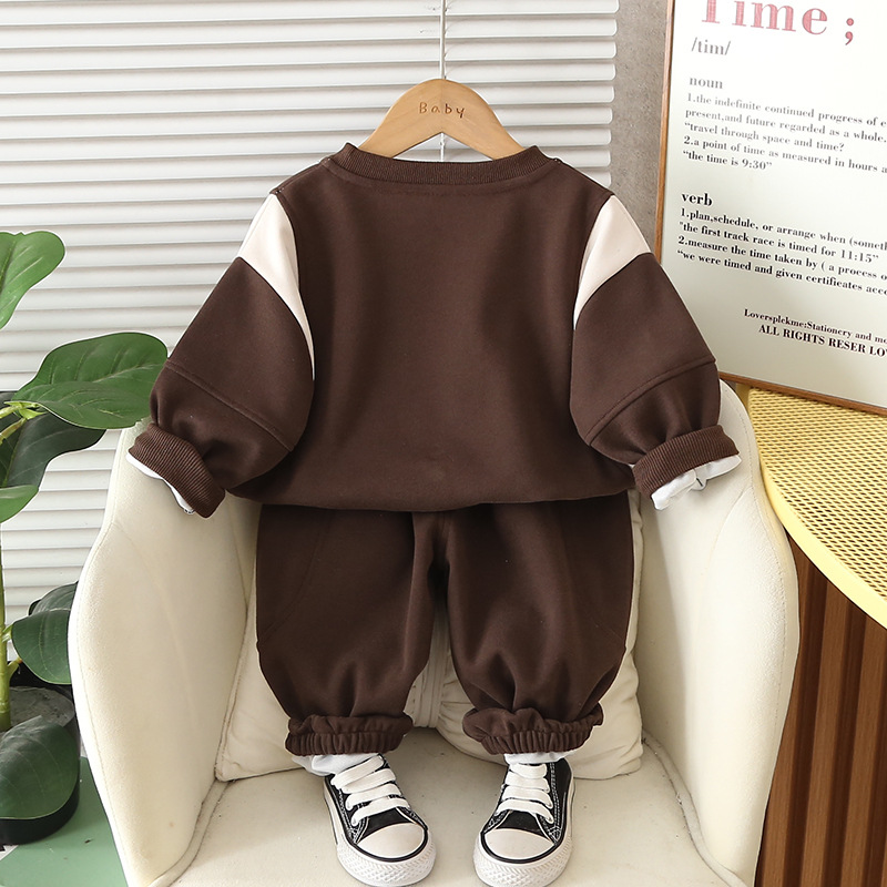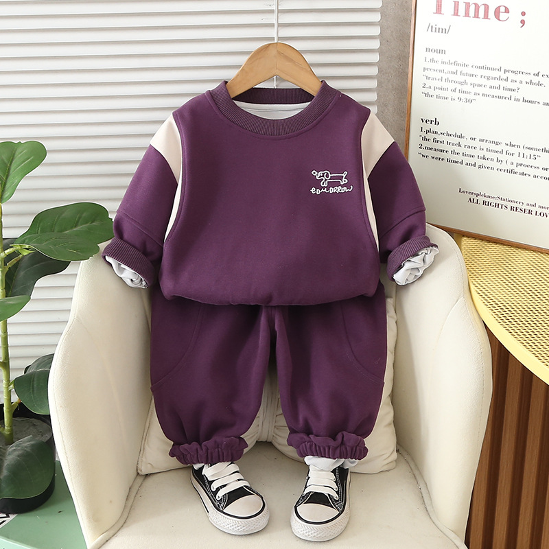 아기 봄 세트 2025 새로운 어린이 봄과 가을 서양식 소년 바느질 강아지 크루 넥 스웨터 투피스 세트
