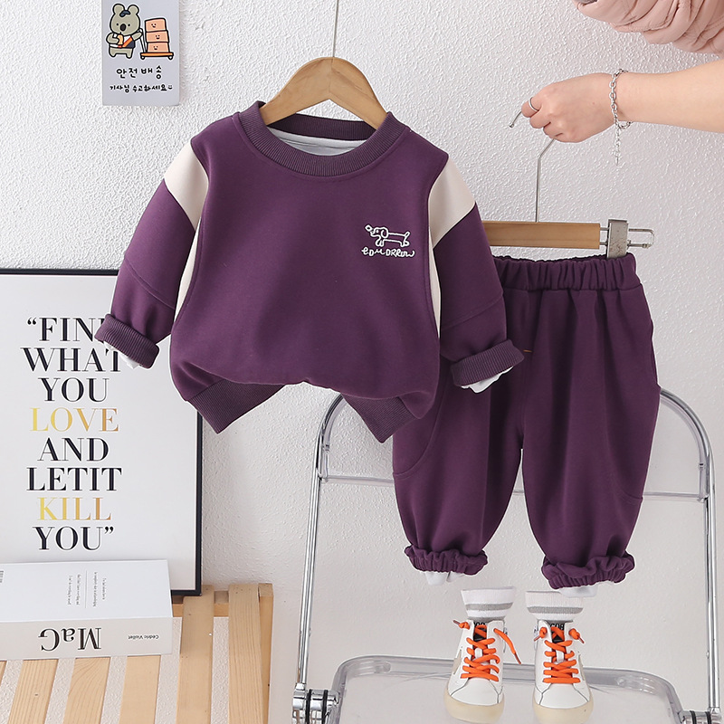 아기 봄 세트 2025 새로운 어린이 봄과 가을 서양식 소년 바느질 강아지 크루 넥 스웨터 투피스 세트스토어 가기