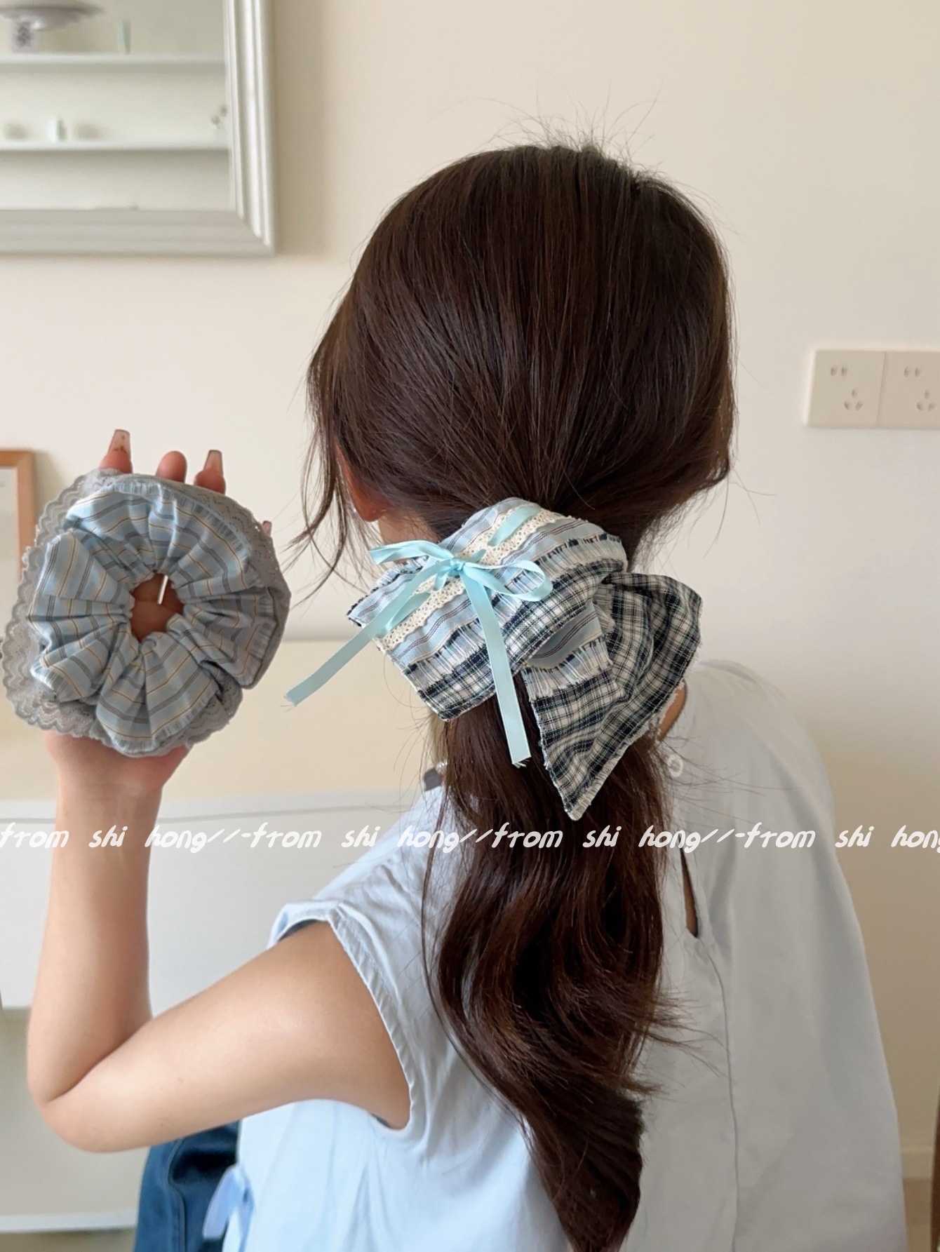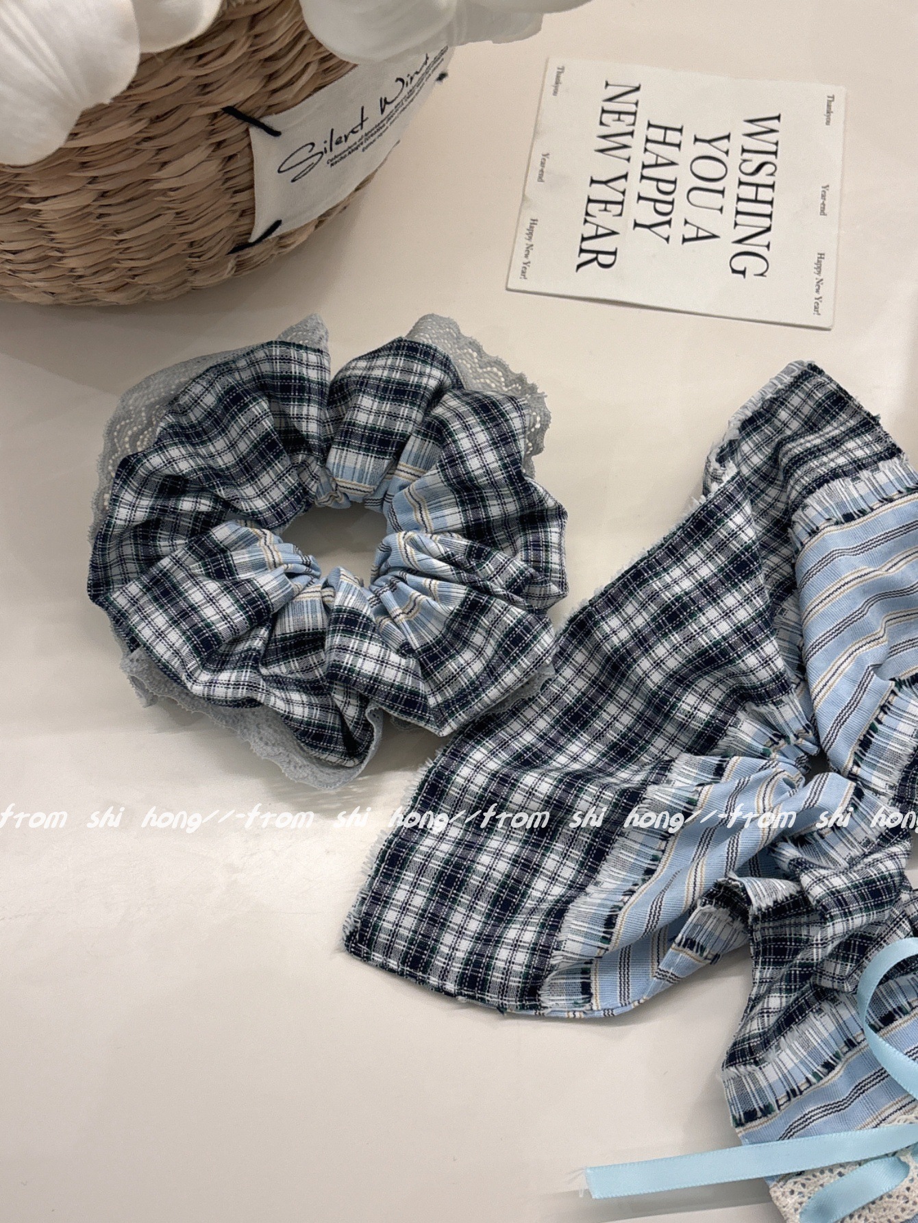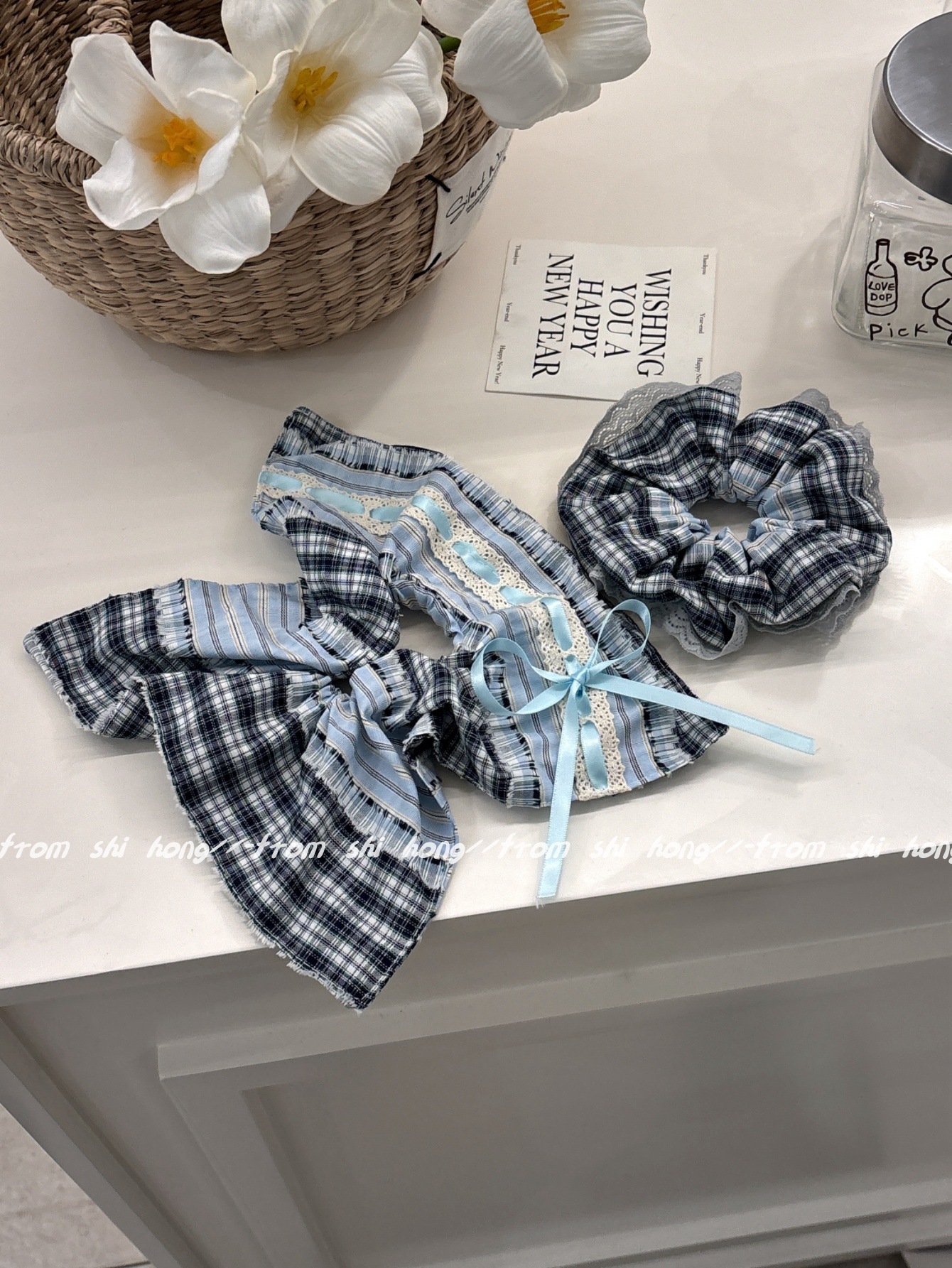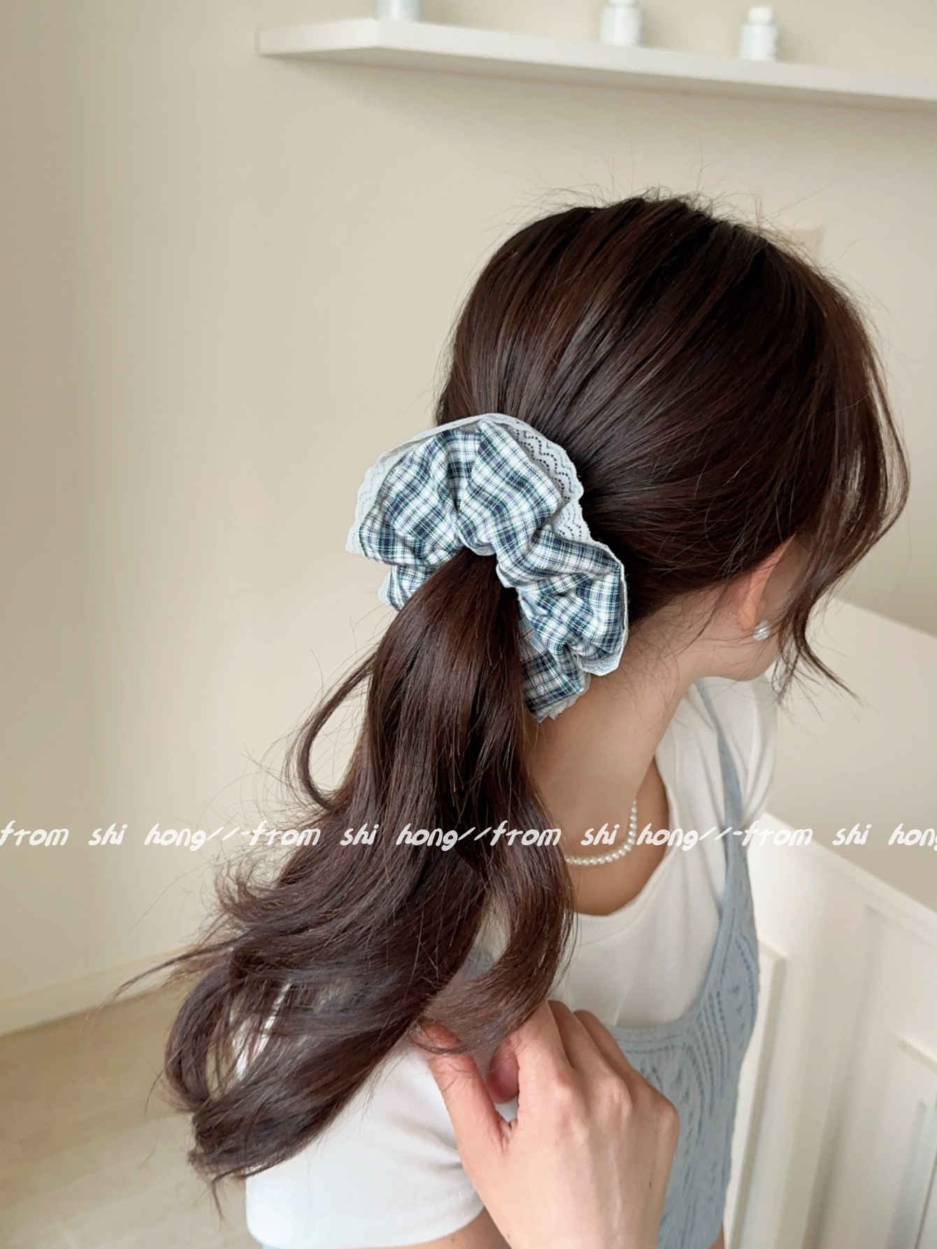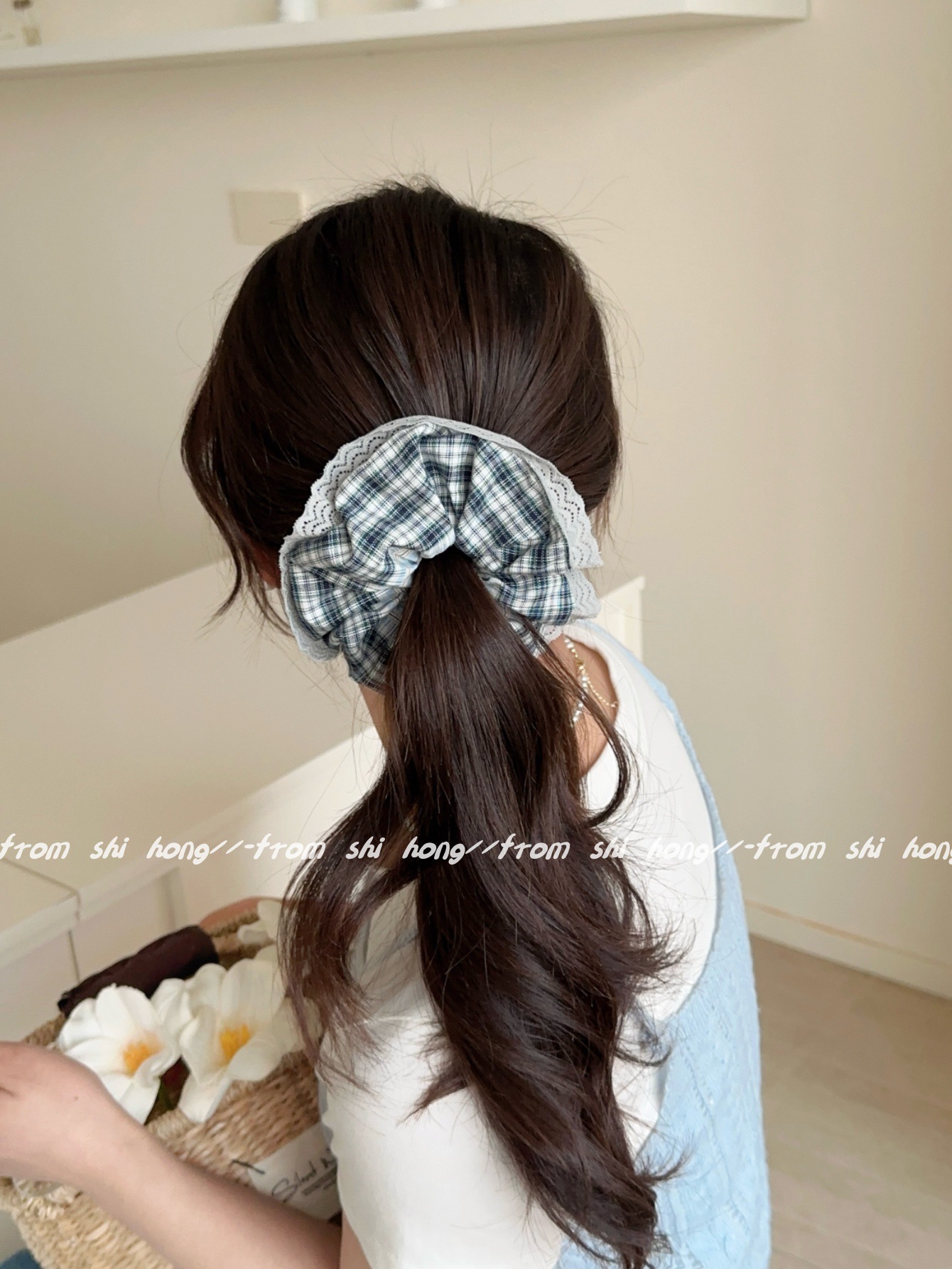 영국 아카데미 스타일 격자 무늬 레이스 레이스 헤어 로프 여성 높은 미용 가치 헤어 플라워 개인화 된 포니 테일 헤어 로프 장내 로프스토어 가기