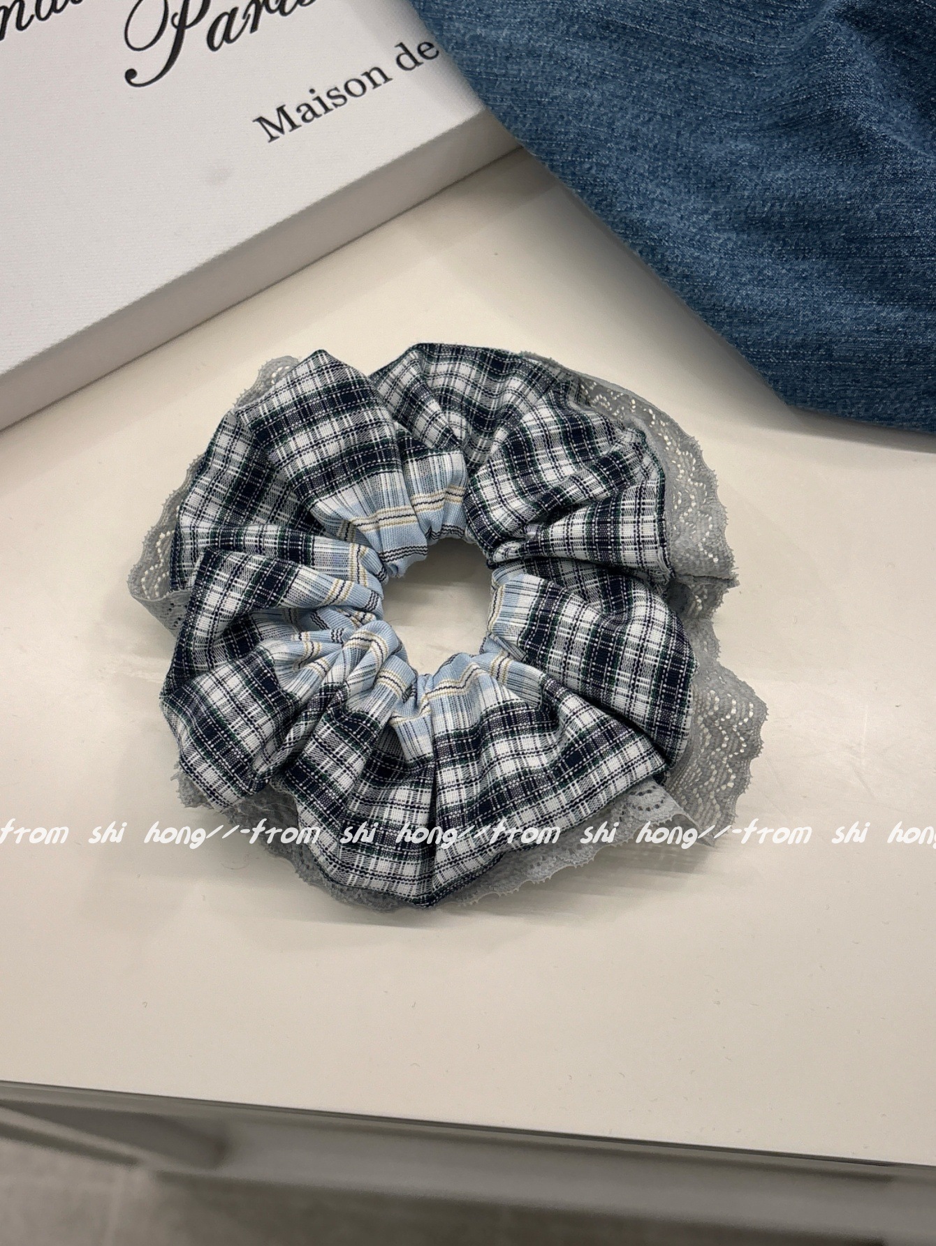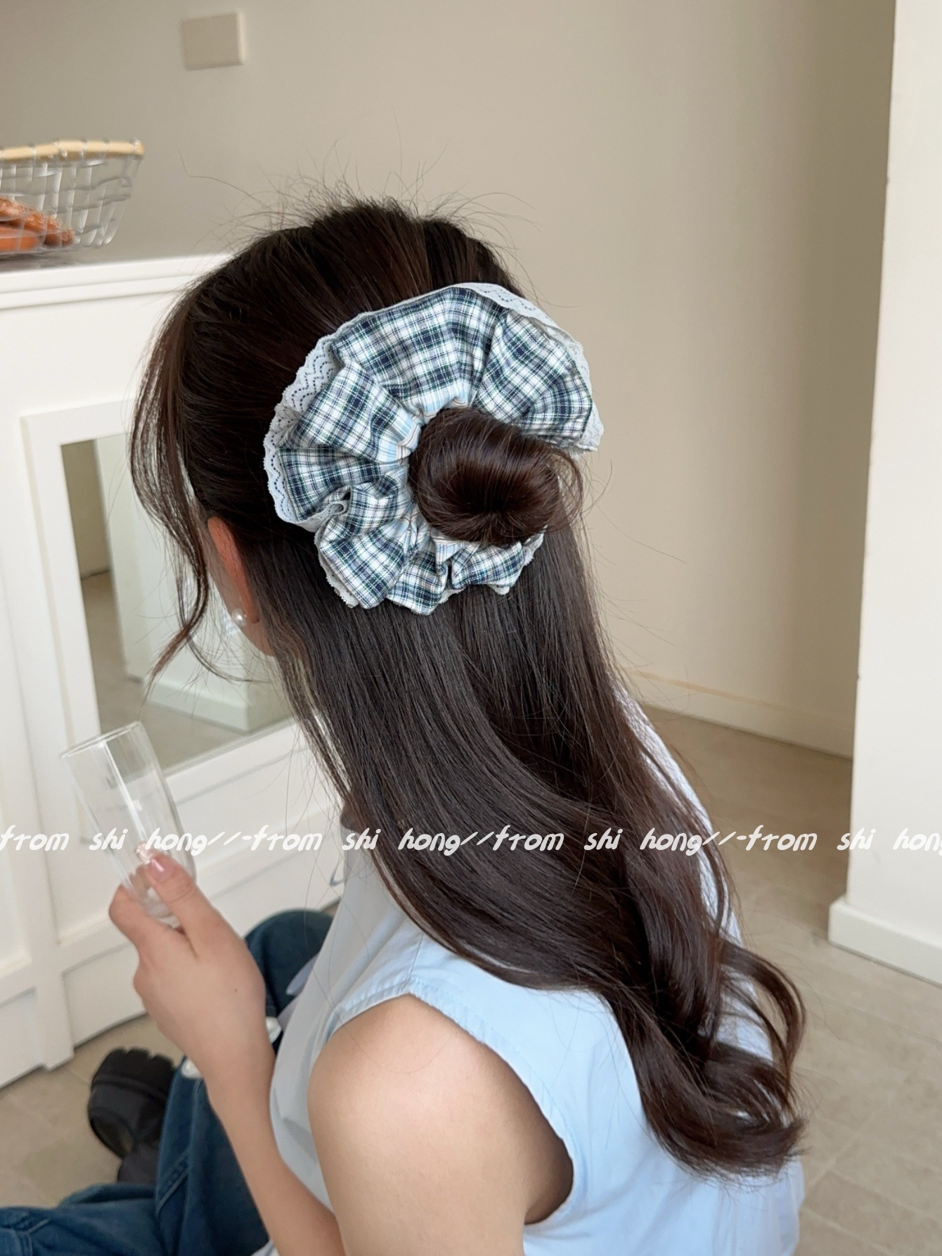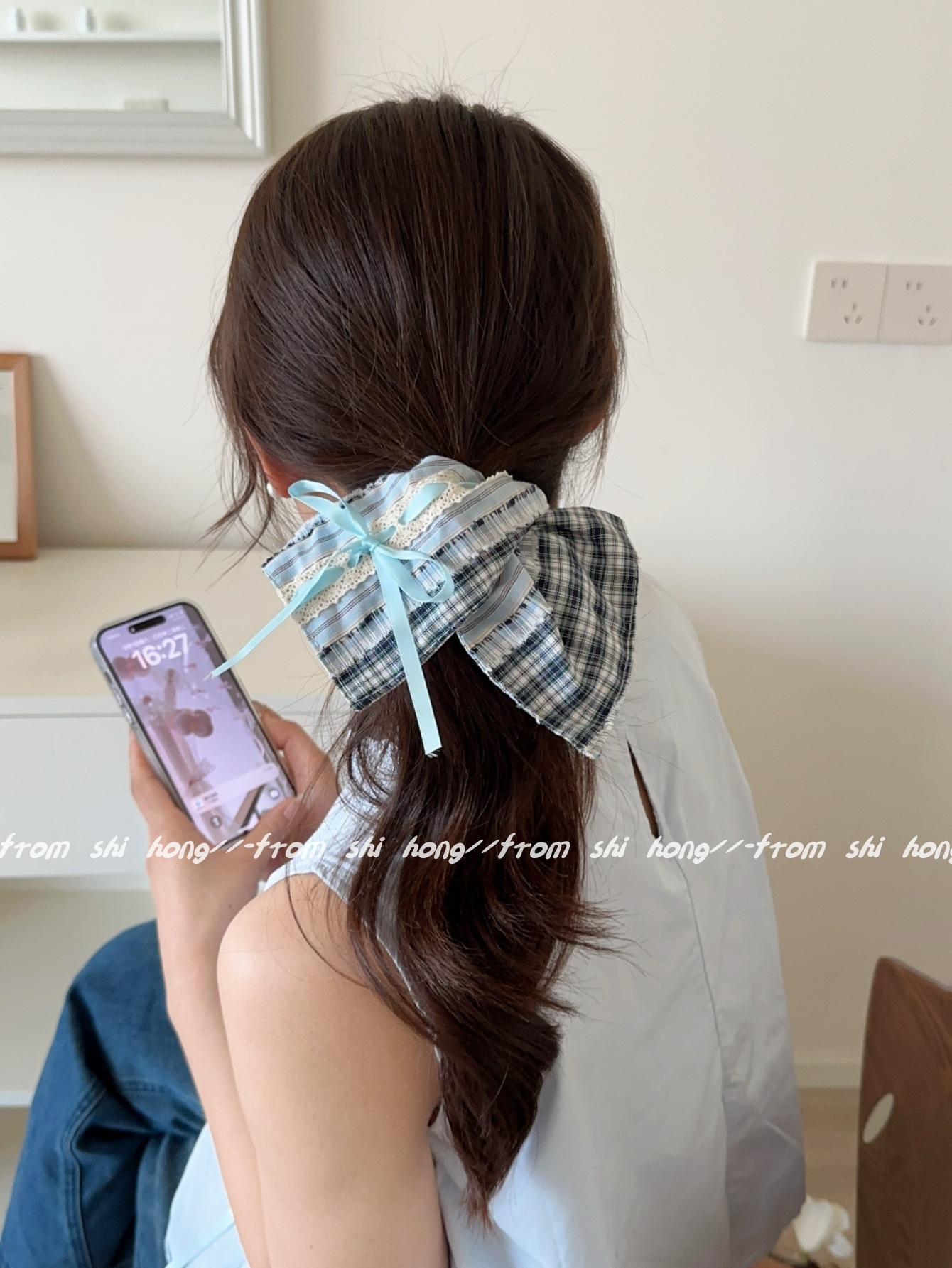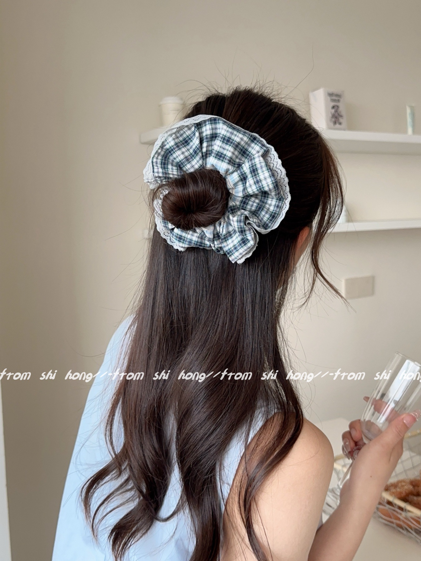 영국 아카데미 스타일 격자 무늬 레이스 레이스 헤어 로프 여성 높은 미용 가치 헤어 플라워 개인화 된 포니 테일 헤어 로프 장내 로프스토어 가기