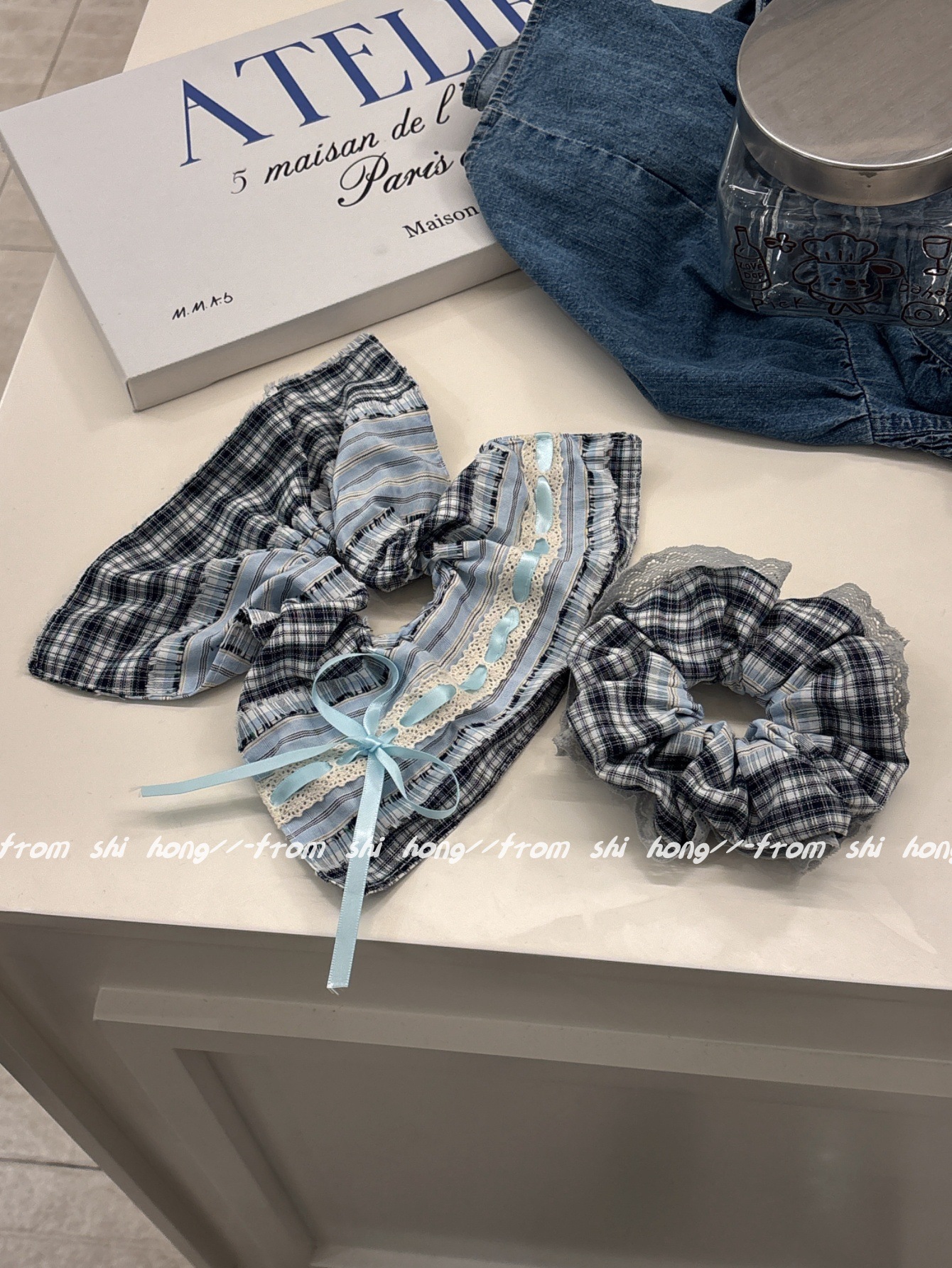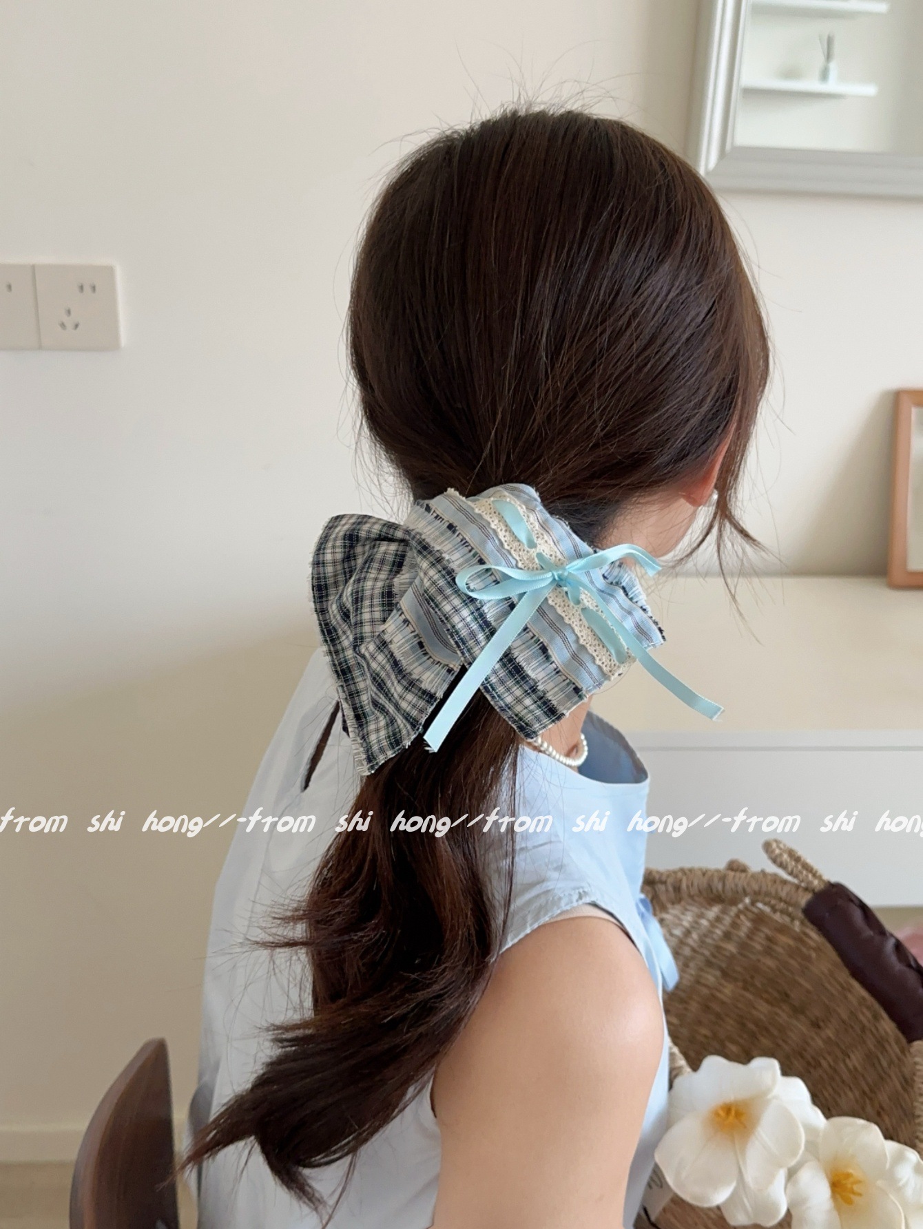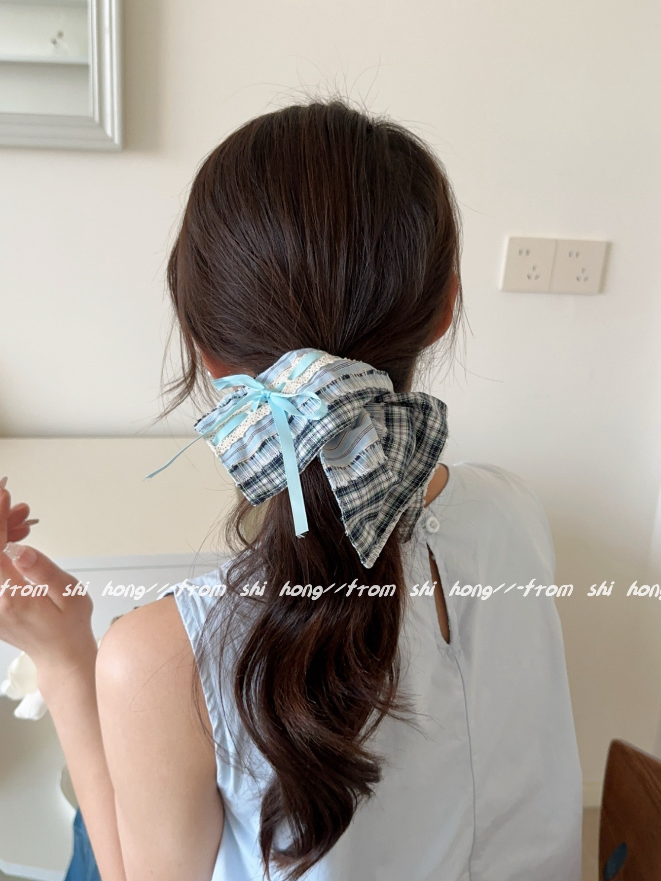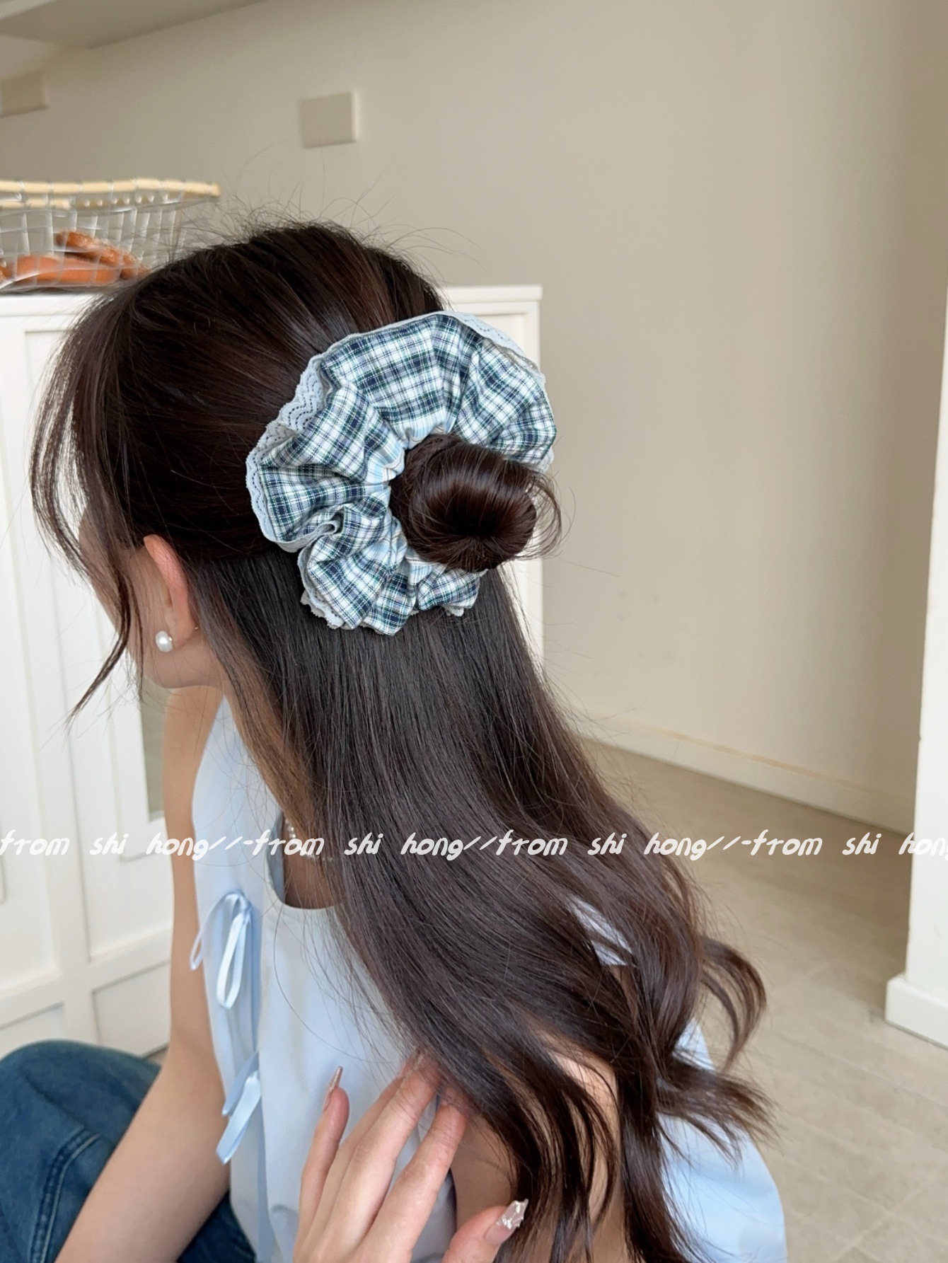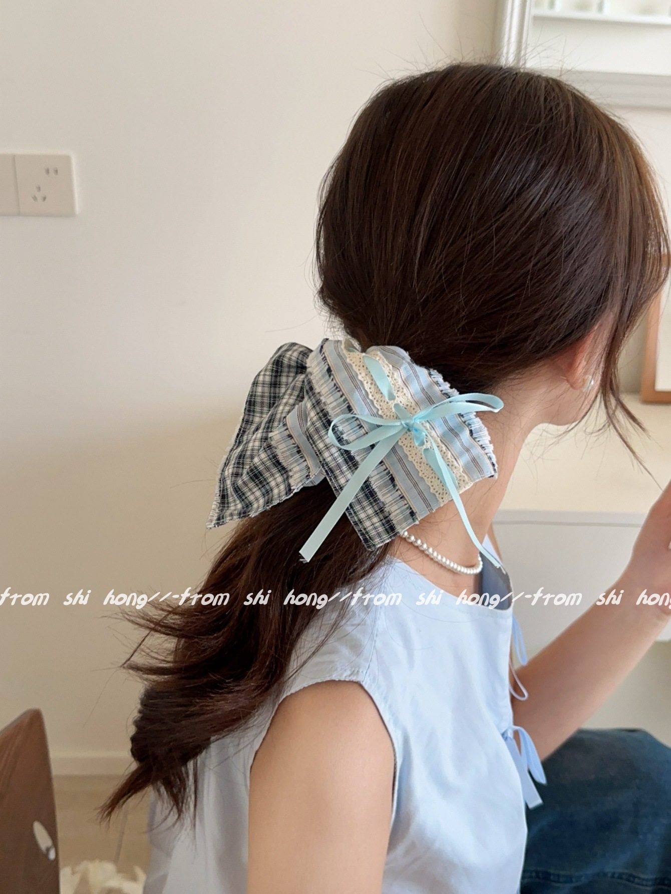 영국 아카데미 스타일 격자 무늬 레이스 레이스 헤어 로프 여성 높은 미용 가치 헤어 플라워 개인화 된 포니 테일 헤어 로프 장내 로프스토어 가기