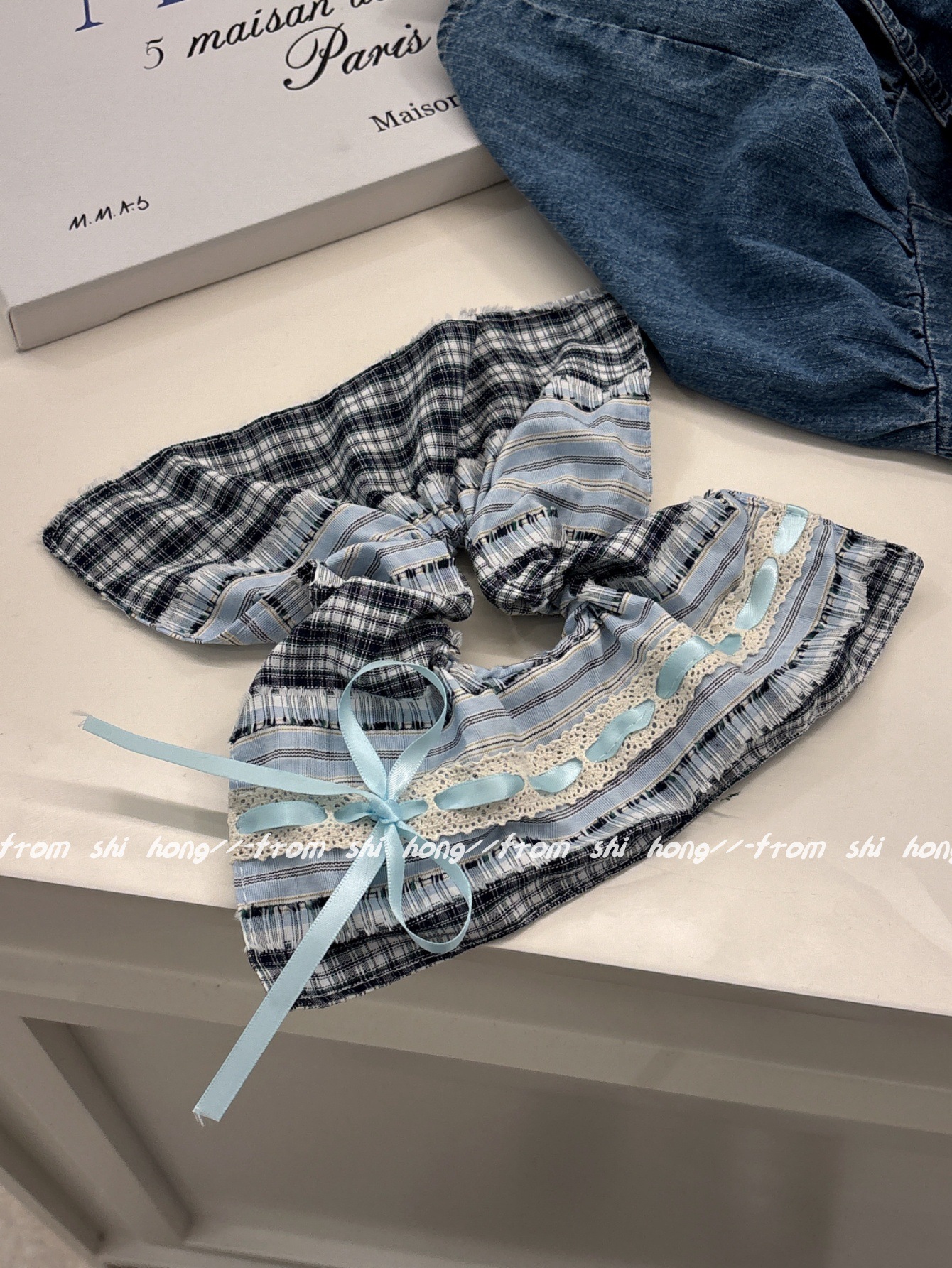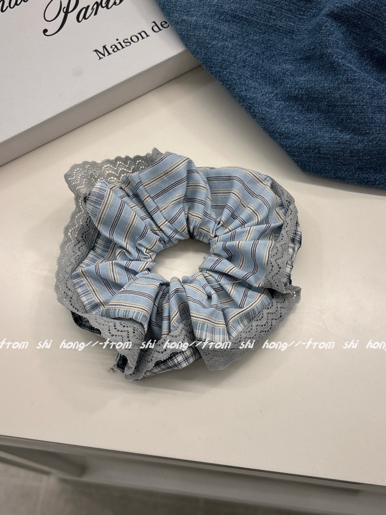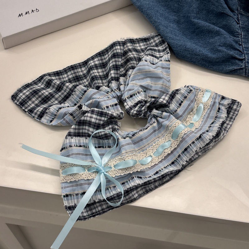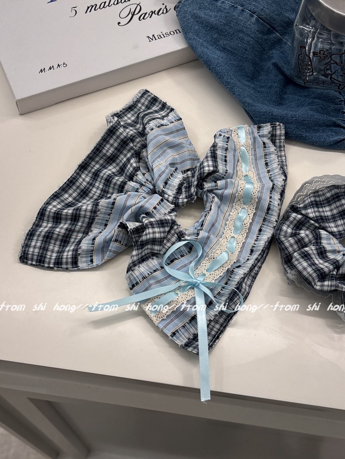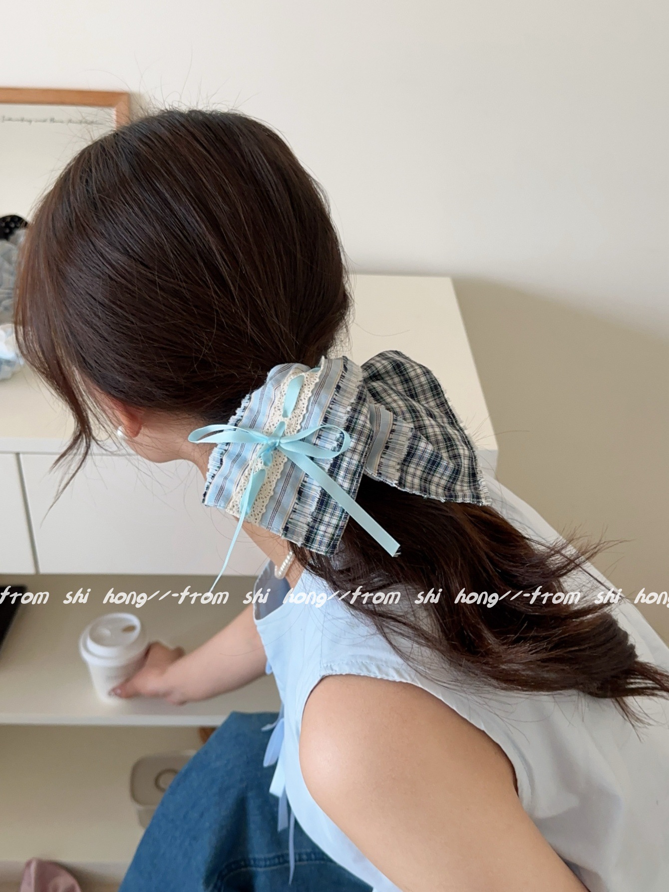 영국 아카데미 스타일 격자 무늬 레이스 레이스 헤어 로프 여성 높은 미용 가치 헤어 플라워 개인화 된 포니 테일 헤어 로프 장내 로프스토어 가기