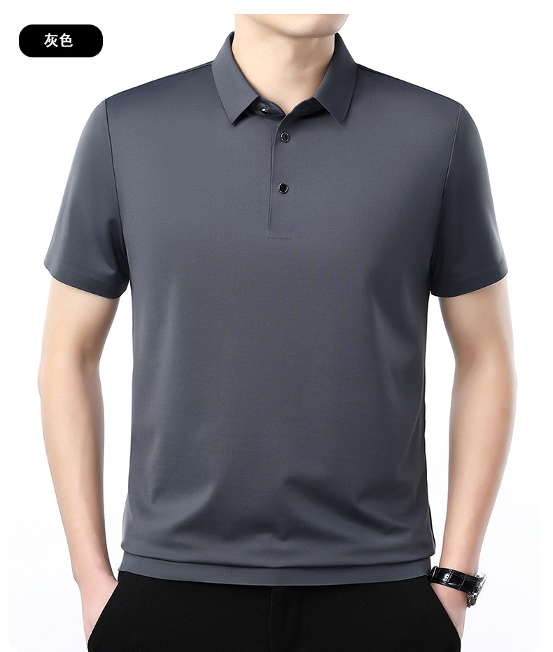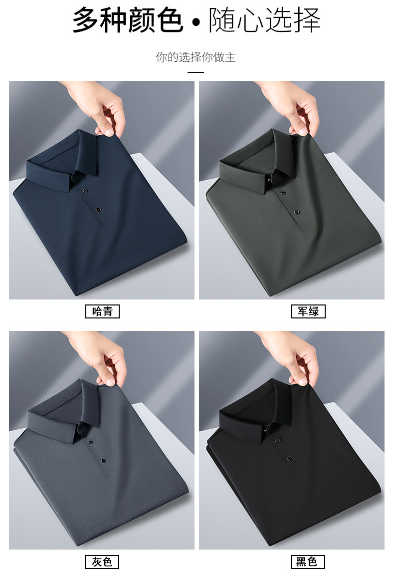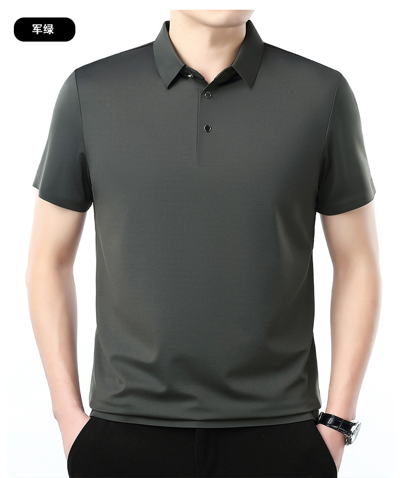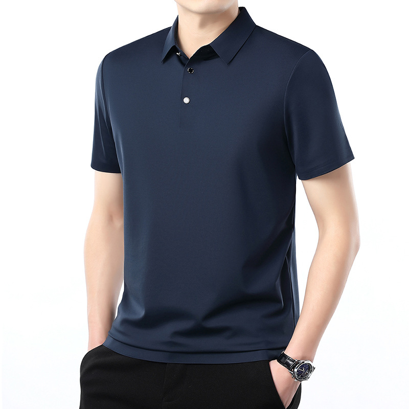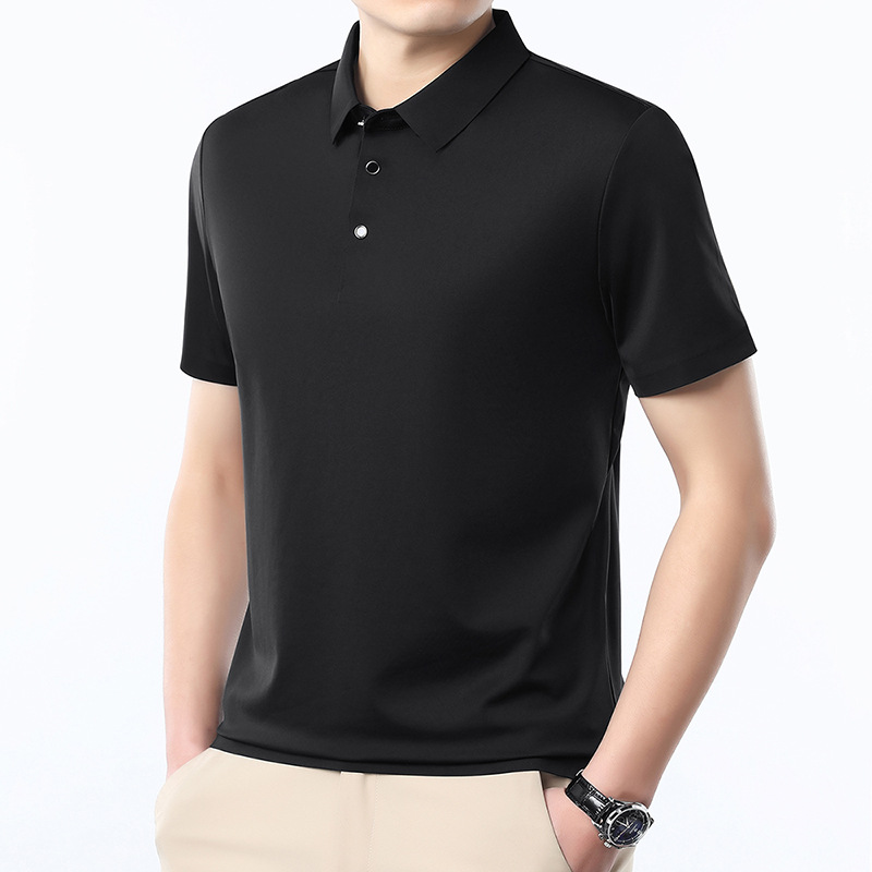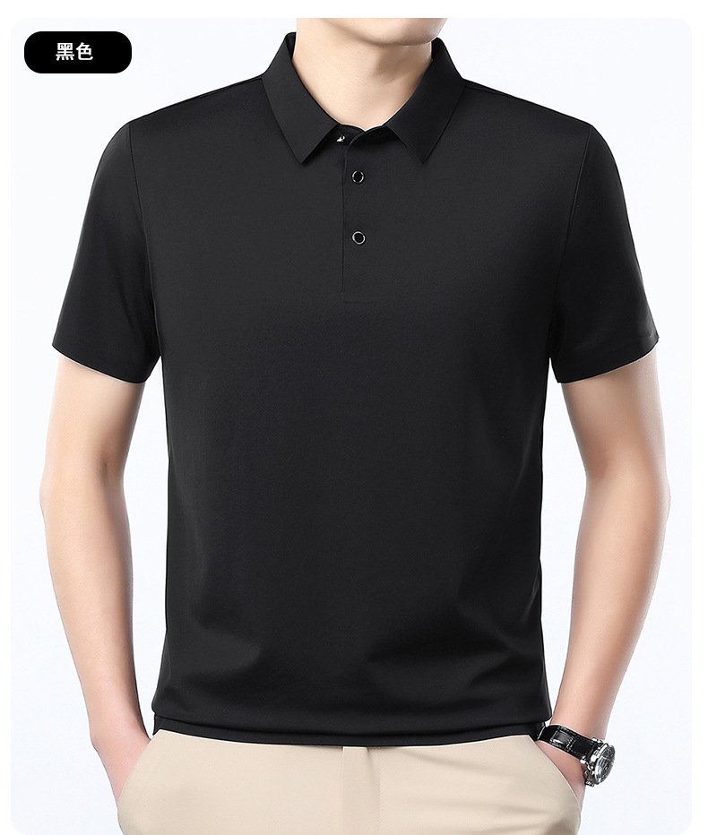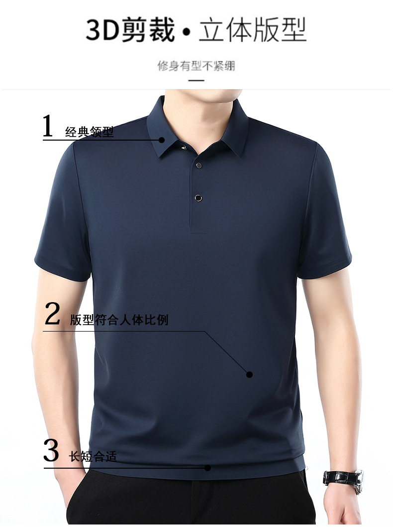 공장 카운터 고급 뽕나무 실크 2025 여름 남성 티셔츠 반팔 비 다림질 사업 캐주얼 중년 POLO 셔츠스토어 가기