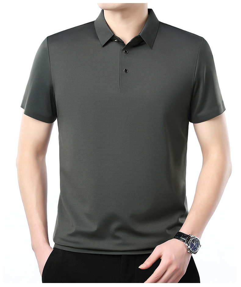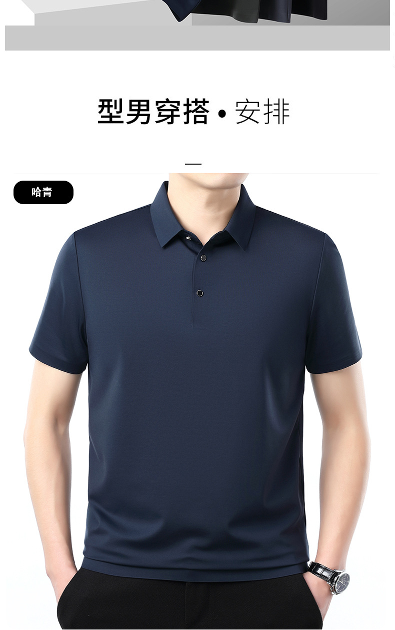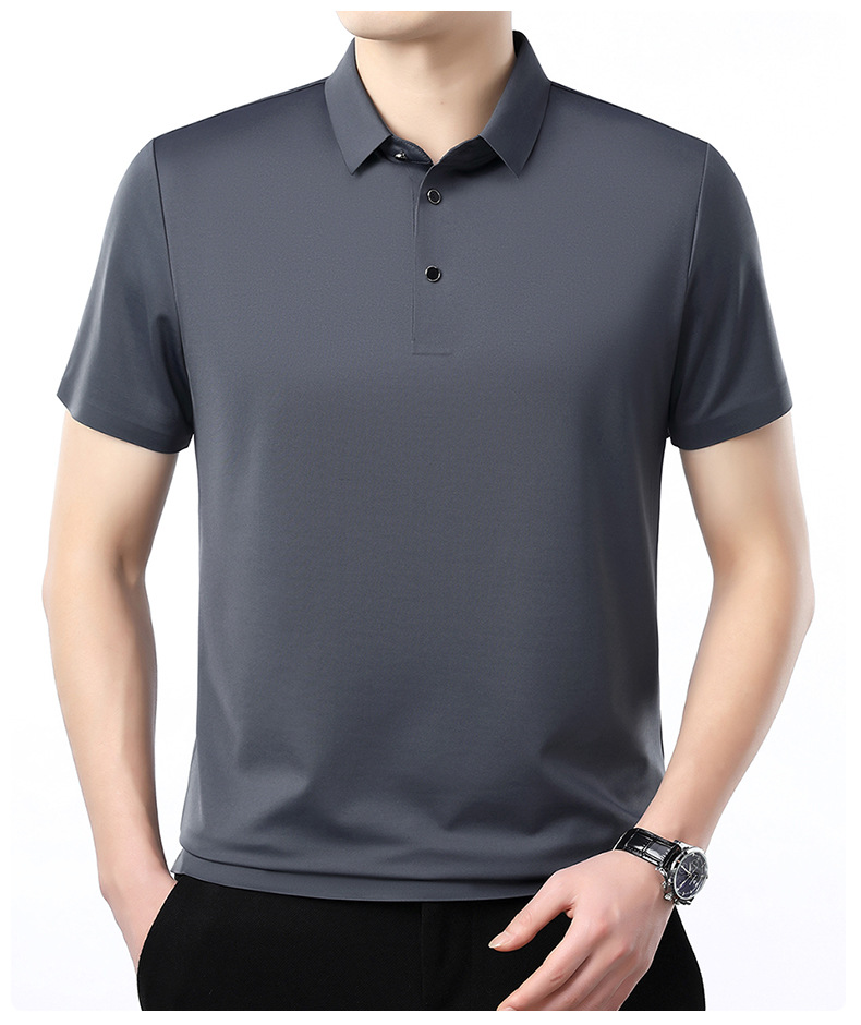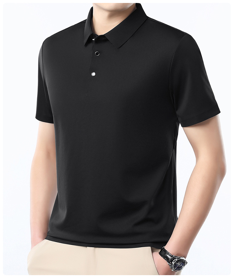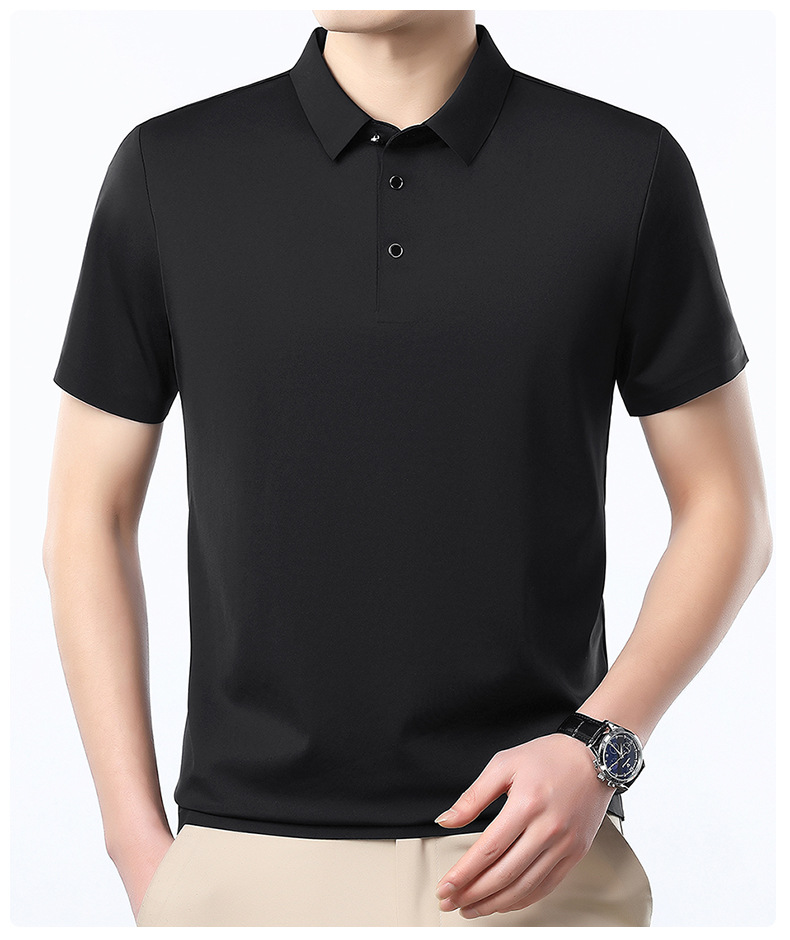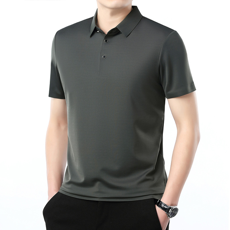 공장 카운터 고급 뽕나무 실크 2025 여름 남성 티셔츠 반팔 비 다림질 사업 캐주얼 중년 POLO 셔츠스토어 가기