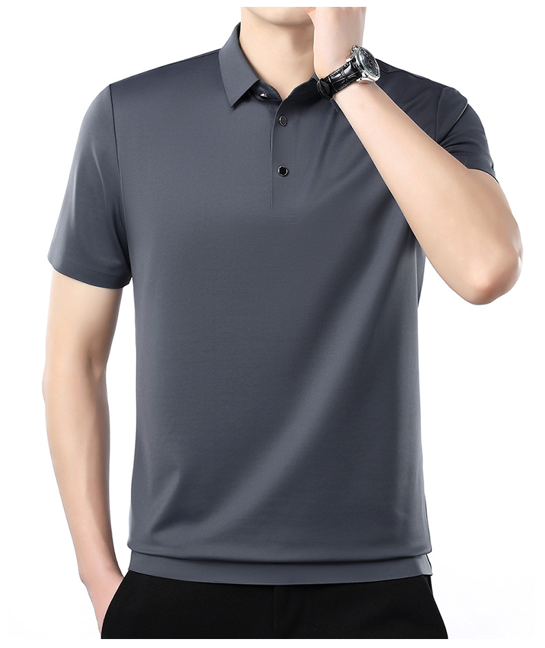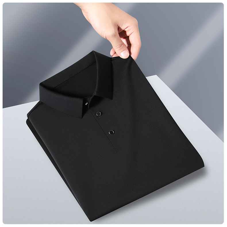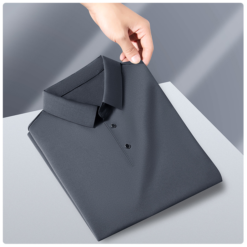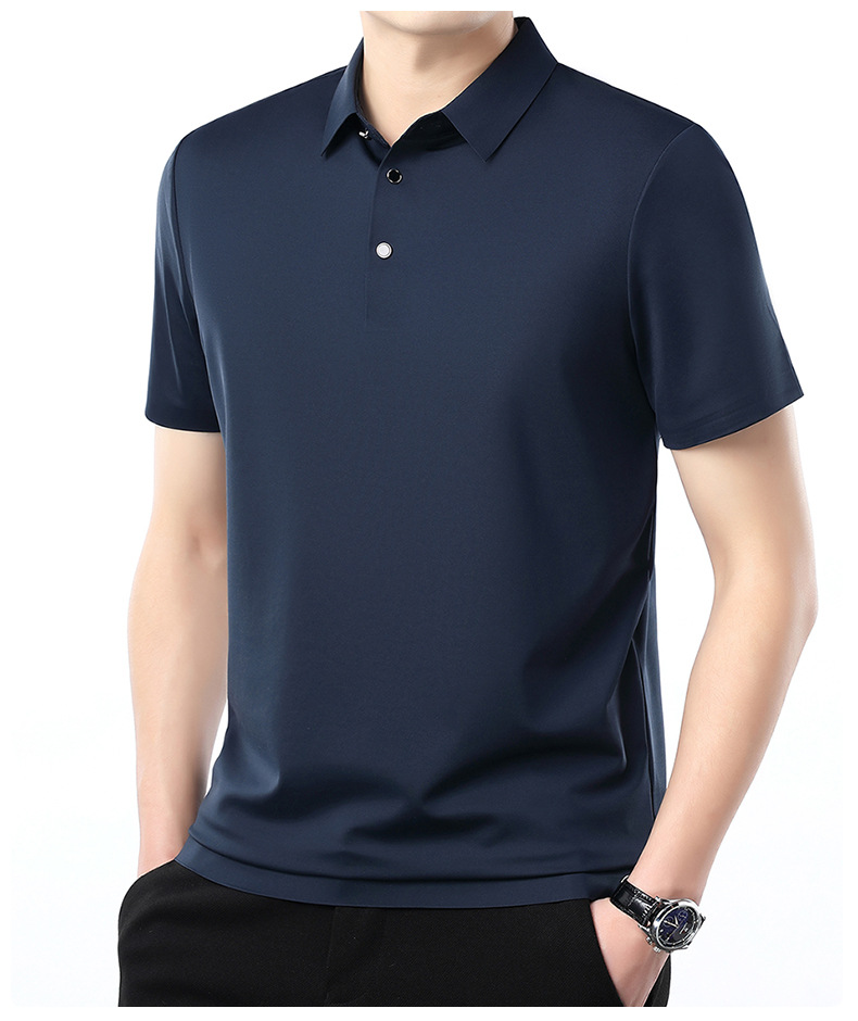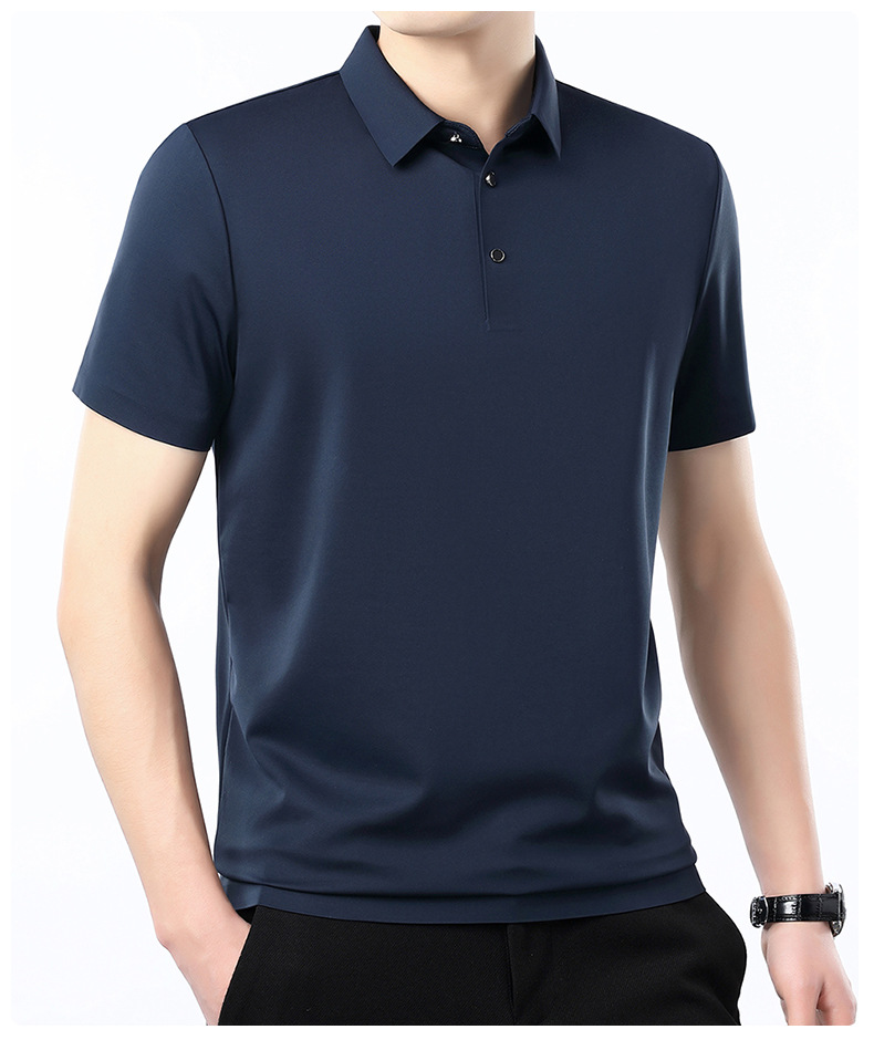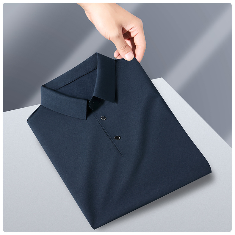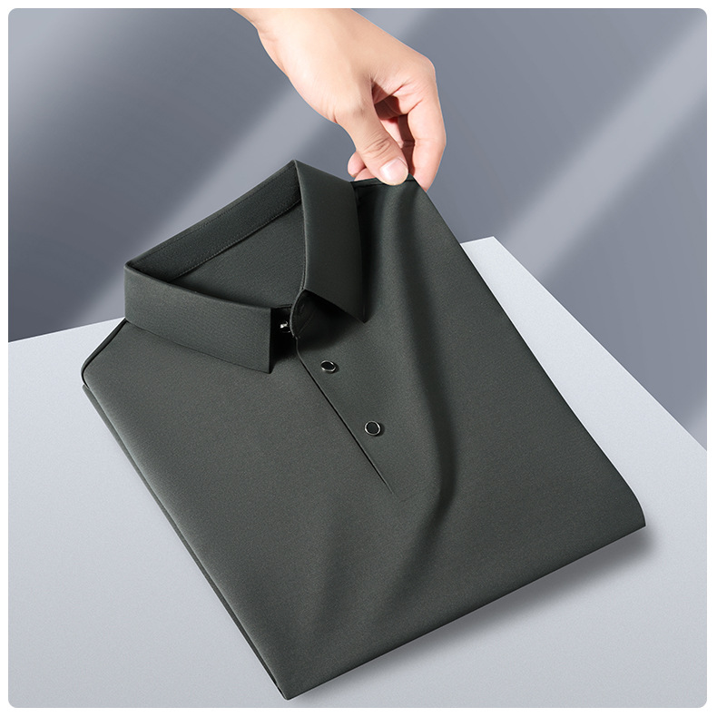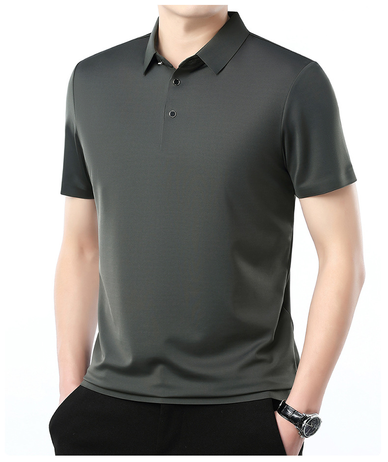 공장 카운터 고급 뽕나무 실크 2025 여름 남성 티셔츠 반팔 비 다림질 사업 캐주얼 중년 POLO 셔츠스토어 가기