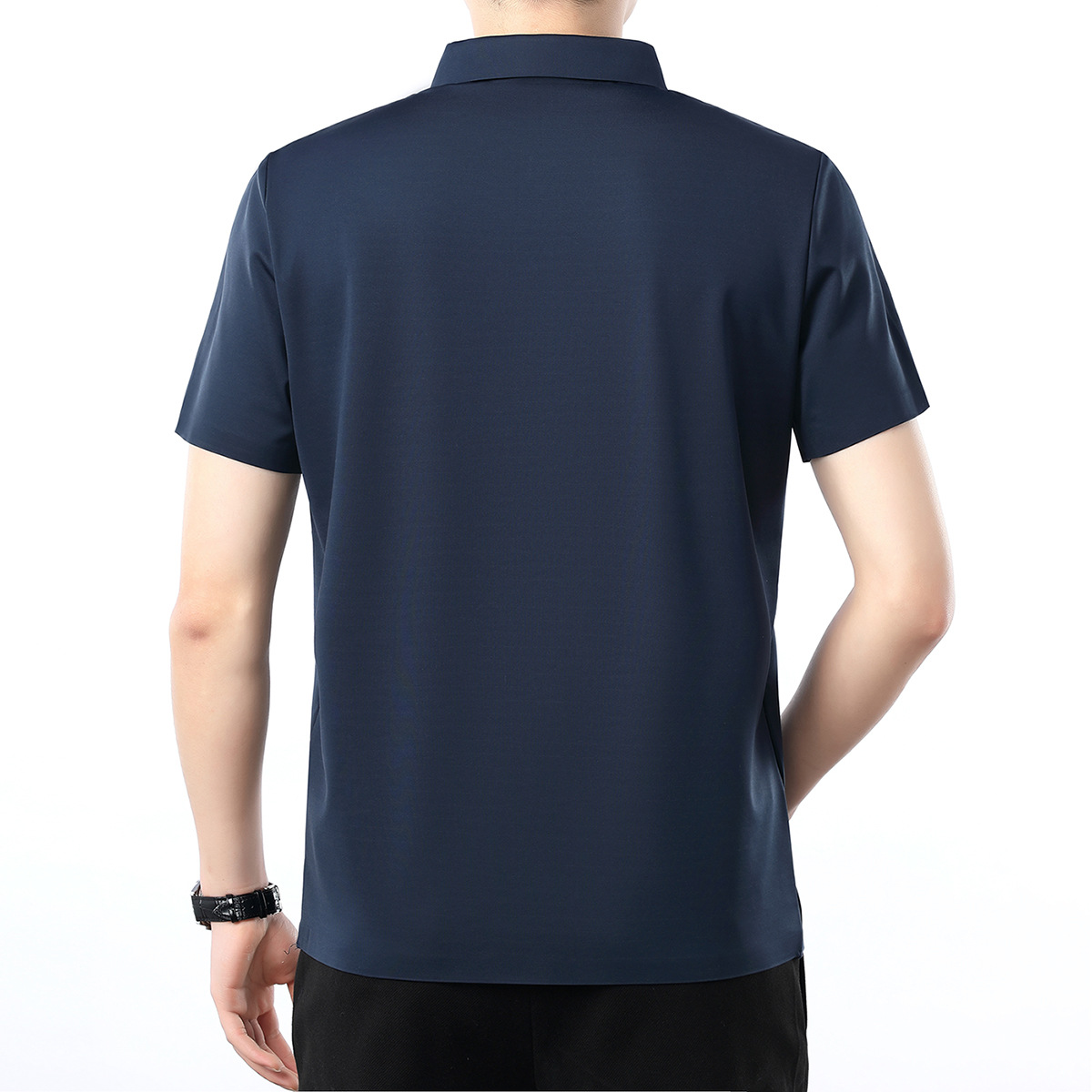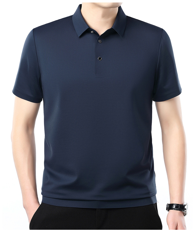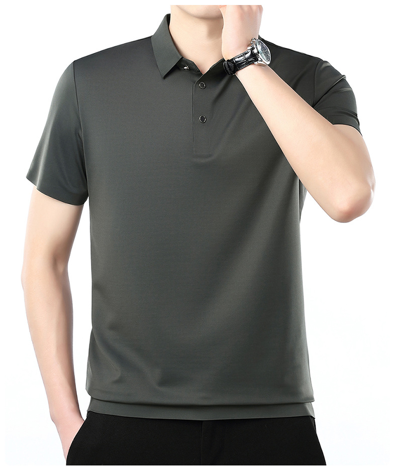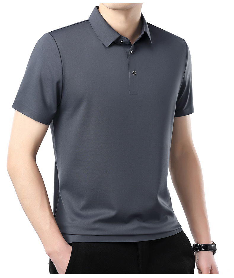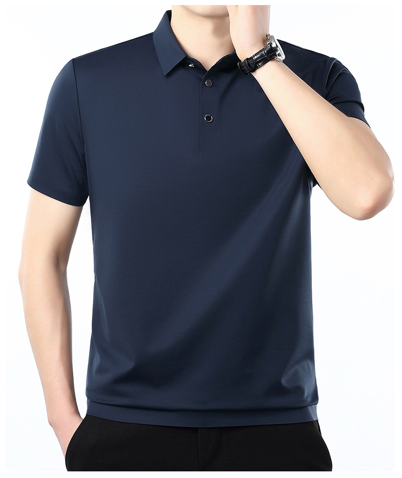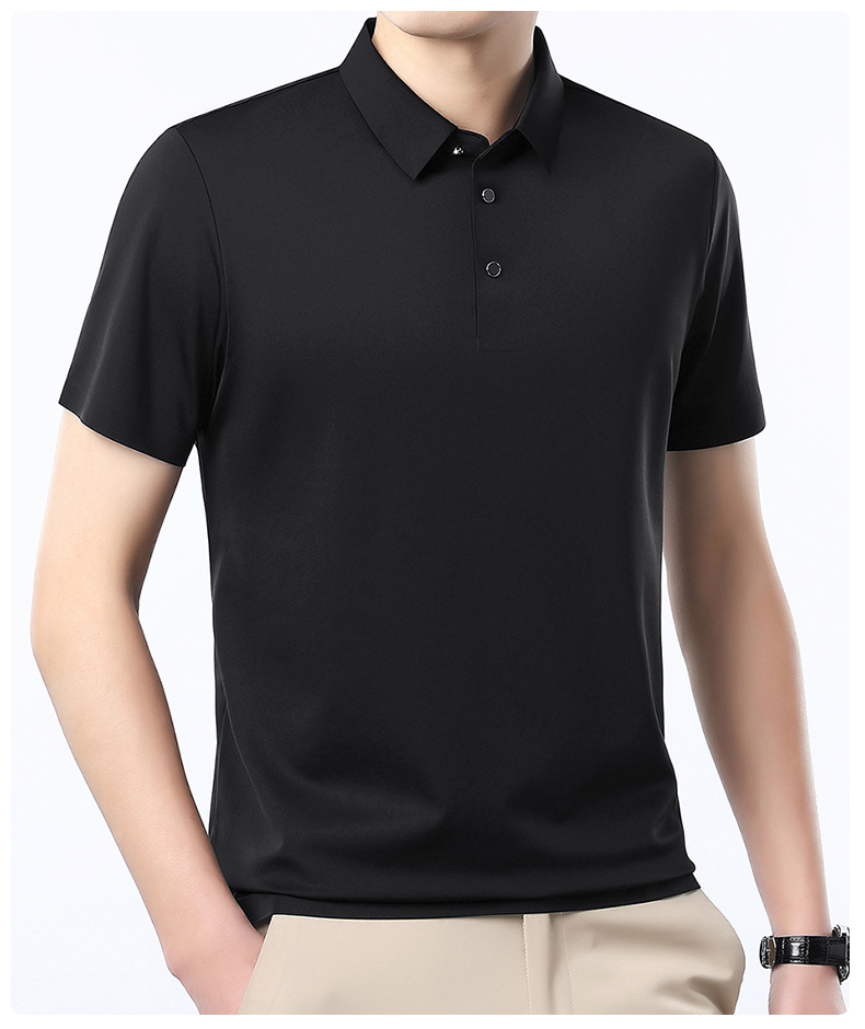 공장 카운터 고급 뽕나무 실크 2025 여름 남성 티셔츠 반팔 비 다림질 사업 캐주얼 중년 POLO 셔츠스토어 가기